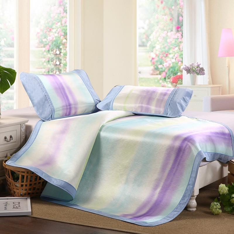 威克凯丽2023新款重磅七彩大提花纯竹纤维软凉席三件套 雅然,雅然