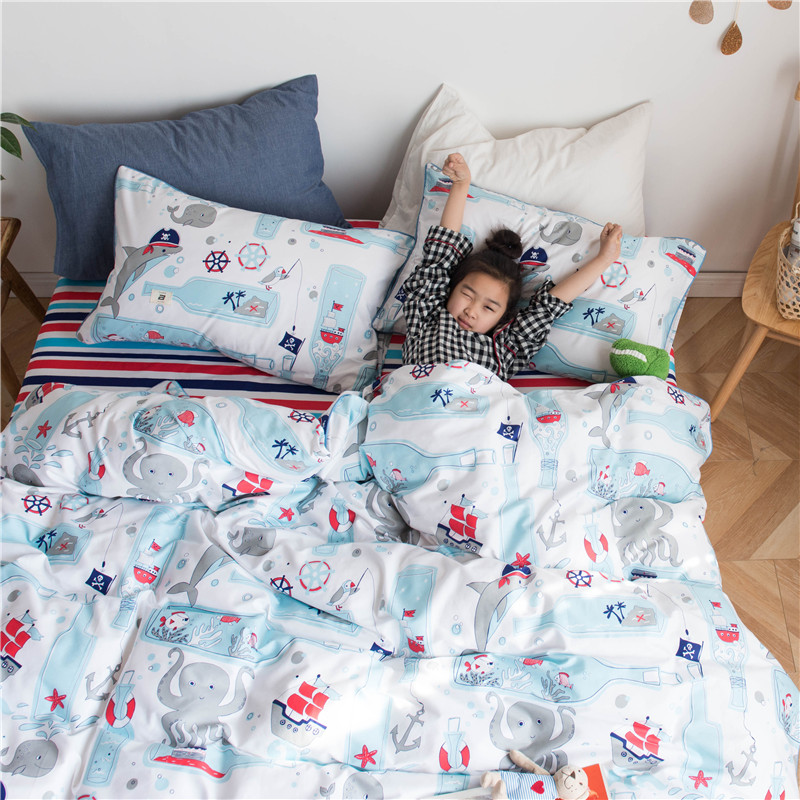 北纬27度 2019水洗棉女神边四件套床单款 神秘海洋