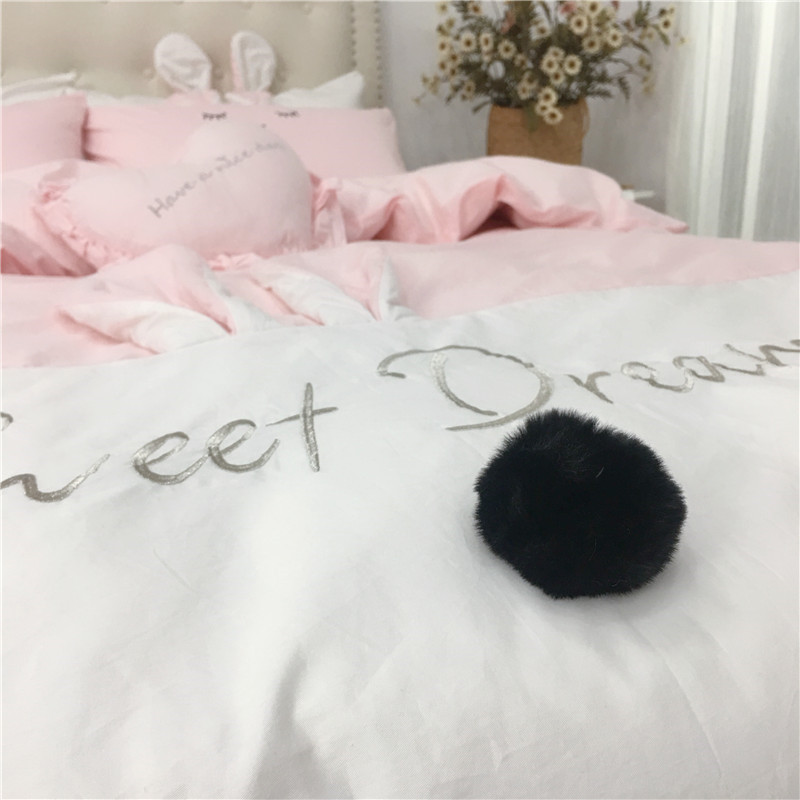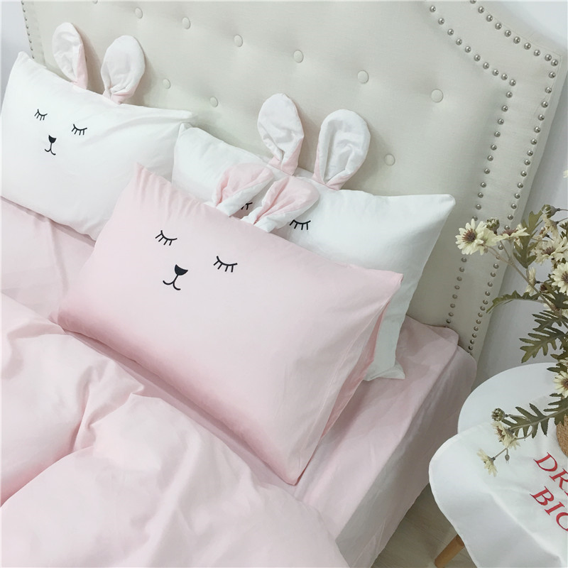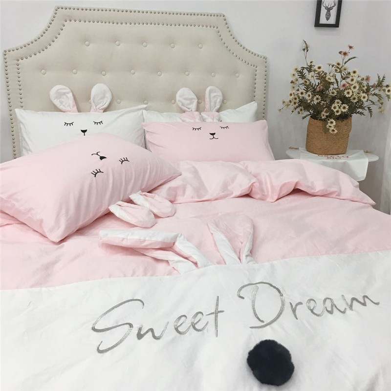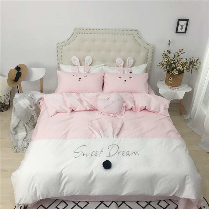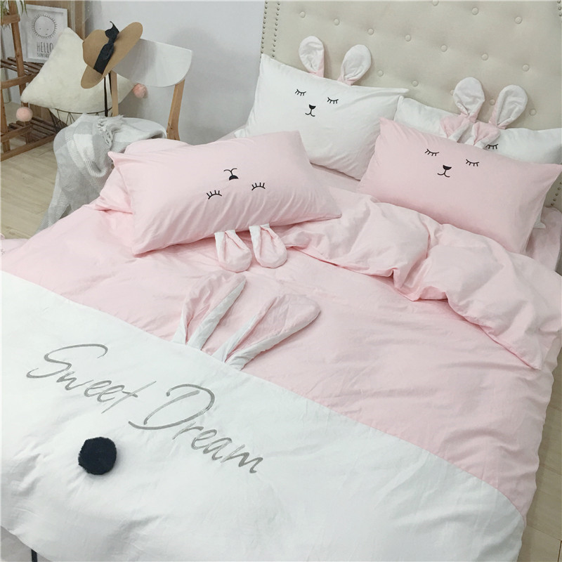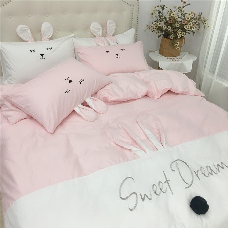 漫调家纺 2019新款ins爆款全棉兔耳朵四件套 甜心粉
