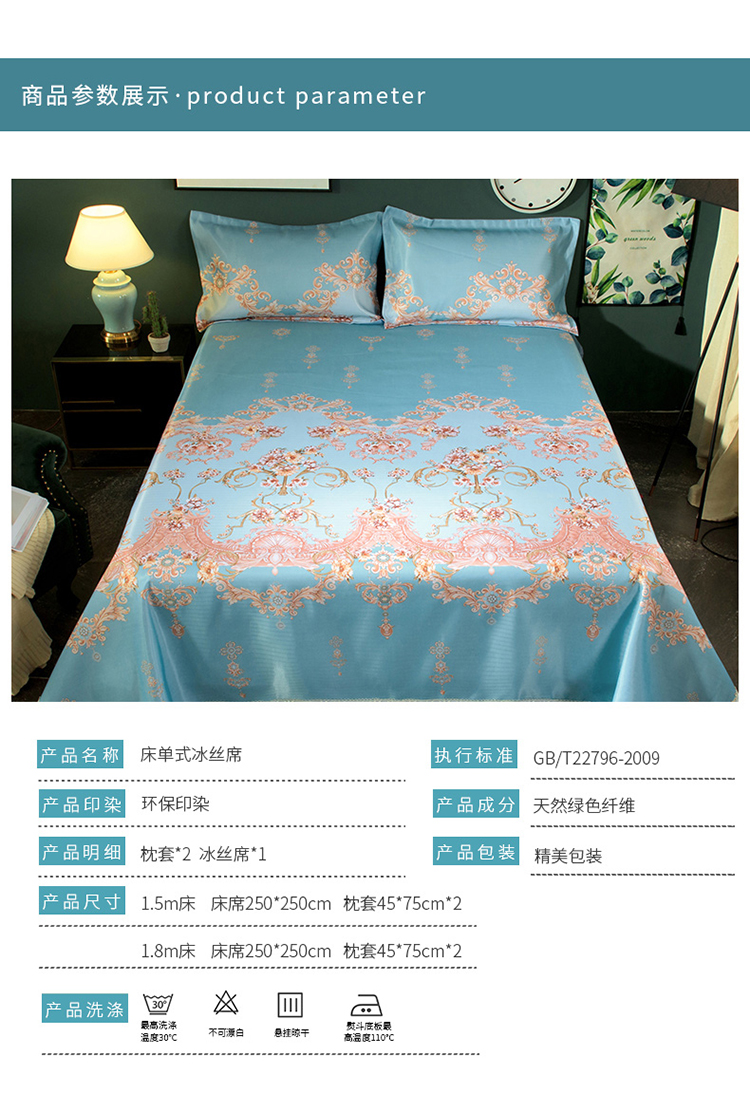 当前位置: 91家纺网 > 商品网购 > 床上用品 > 凉席 > 冰丝席 > 棉生活 2020春夏新品600D冰丝软凉席三件套春之密语-蓝