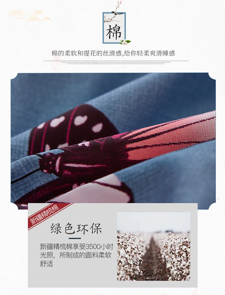 商品名称:雲归梦家纺2019新款13372全棉活性大版四件套爱的魔法绿