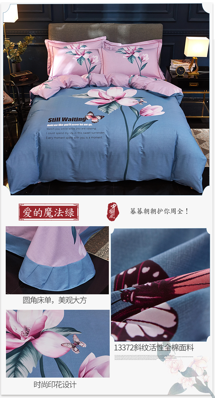 雲归梦家纺2019新款13372全棉活性大版四件套爱的魔法绿