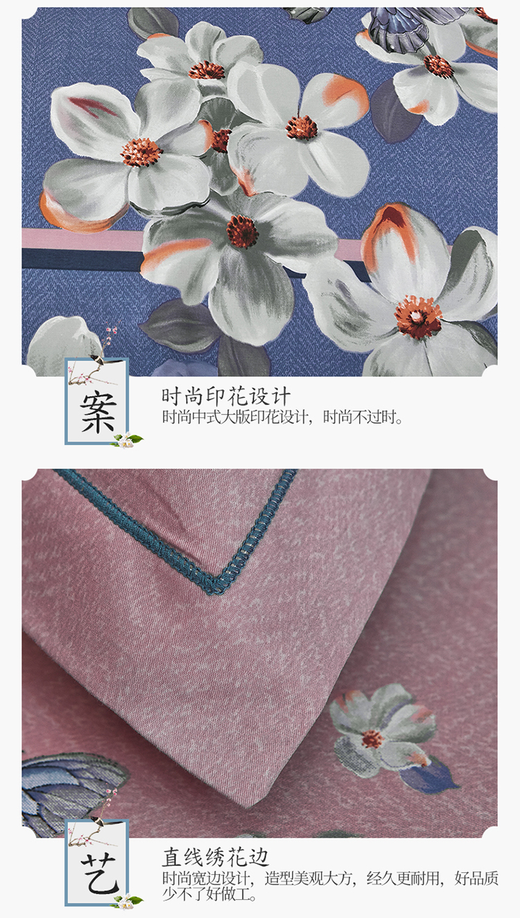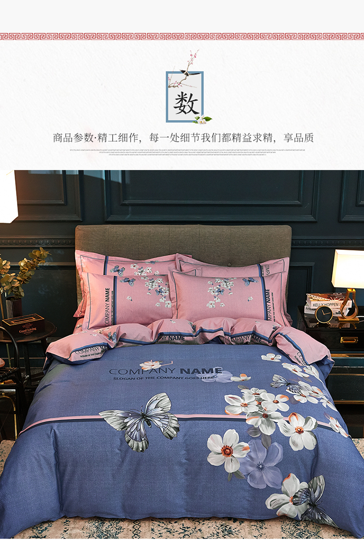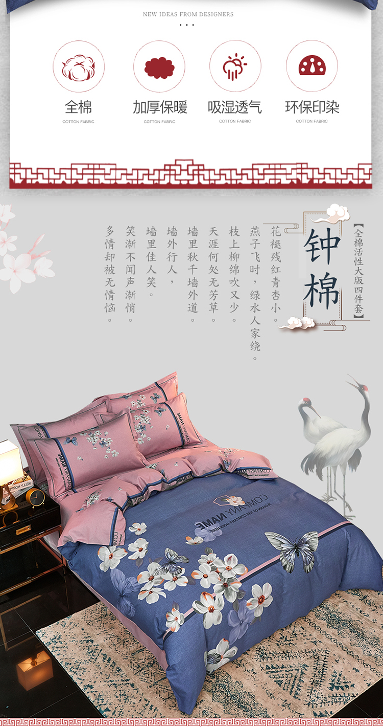 商品名称:雲归梦家纺 2019新款13372全棉活性大版四件套 恋蝶