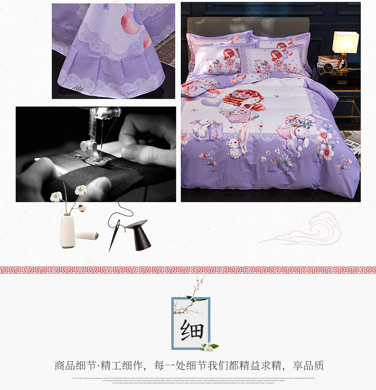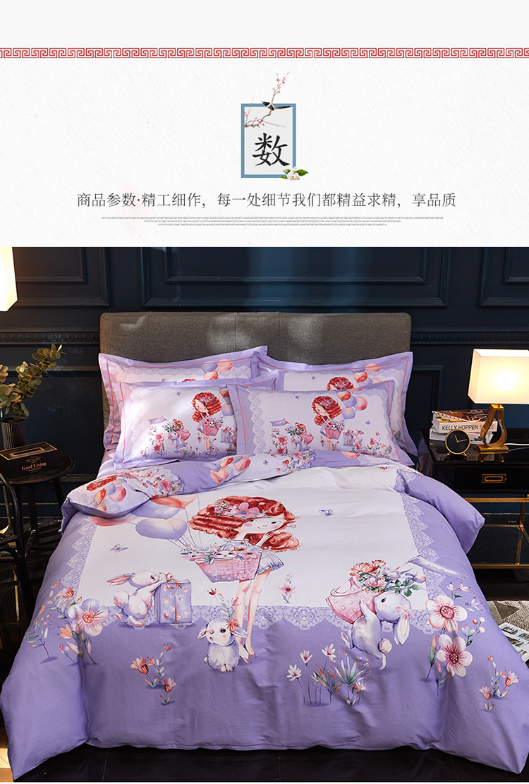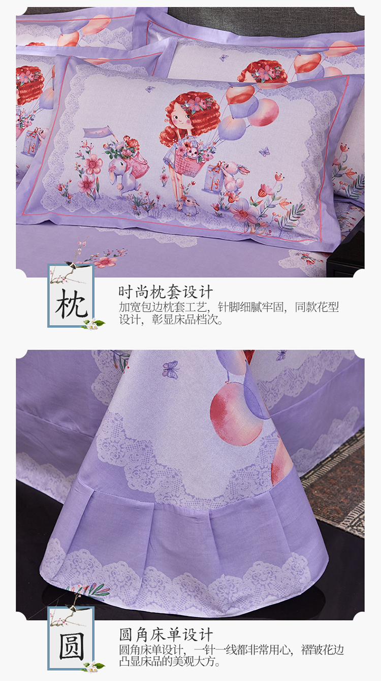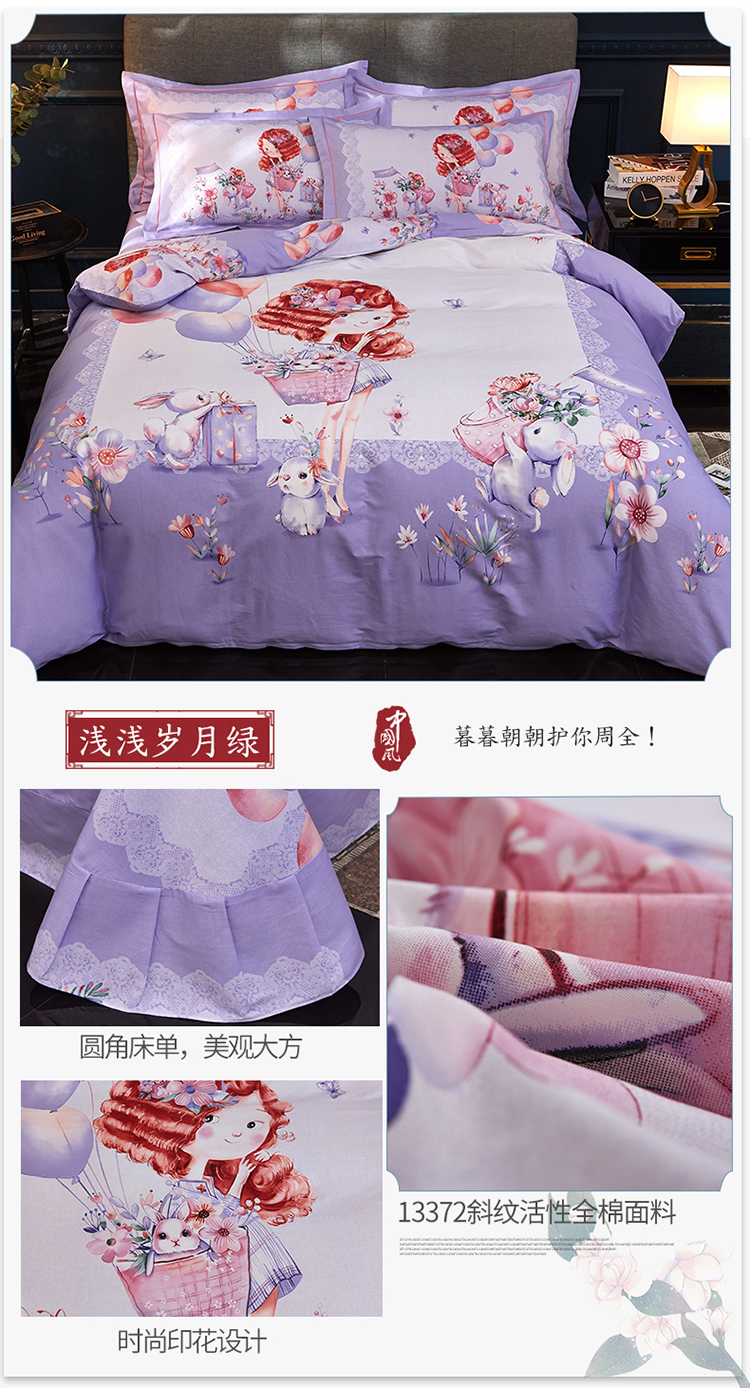 商品名称:雲归梦家纺2019新款13372全棉活性大版四件套 甜心宝贝