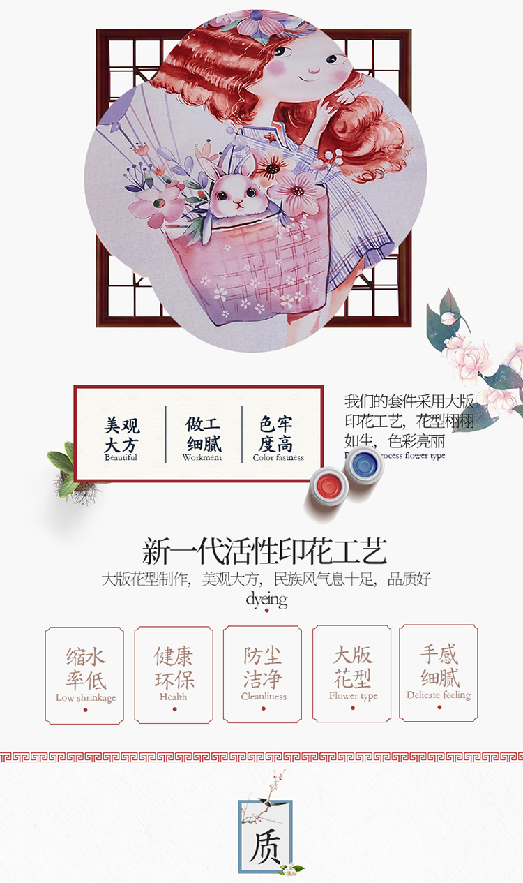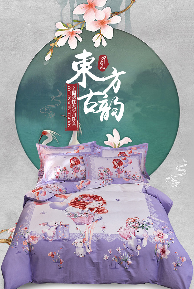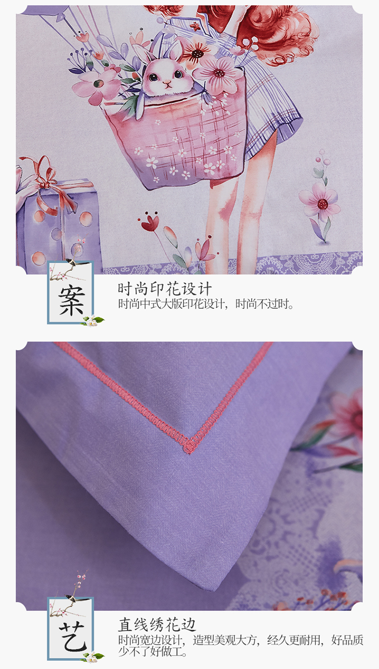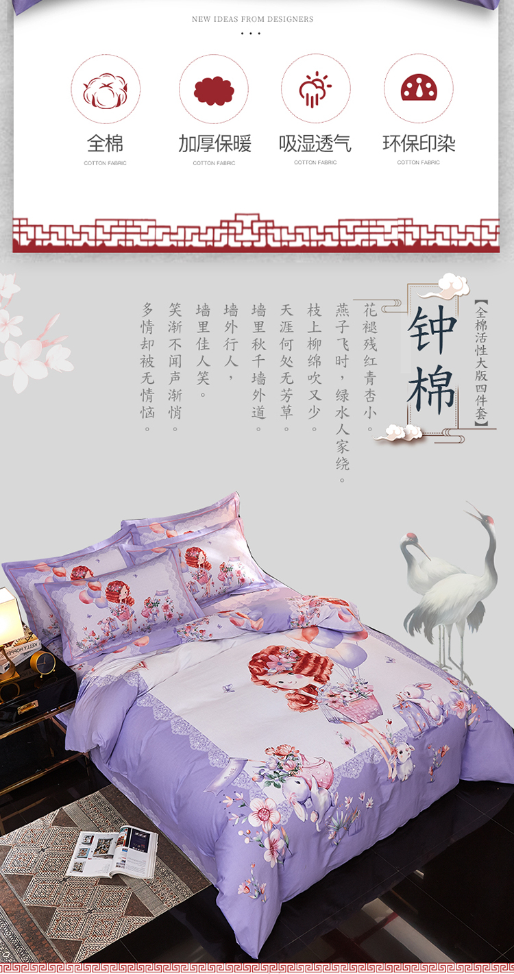 商品名称:雲归梦家纺2019新款13372全棉活性大版四件套 甜心宝贝