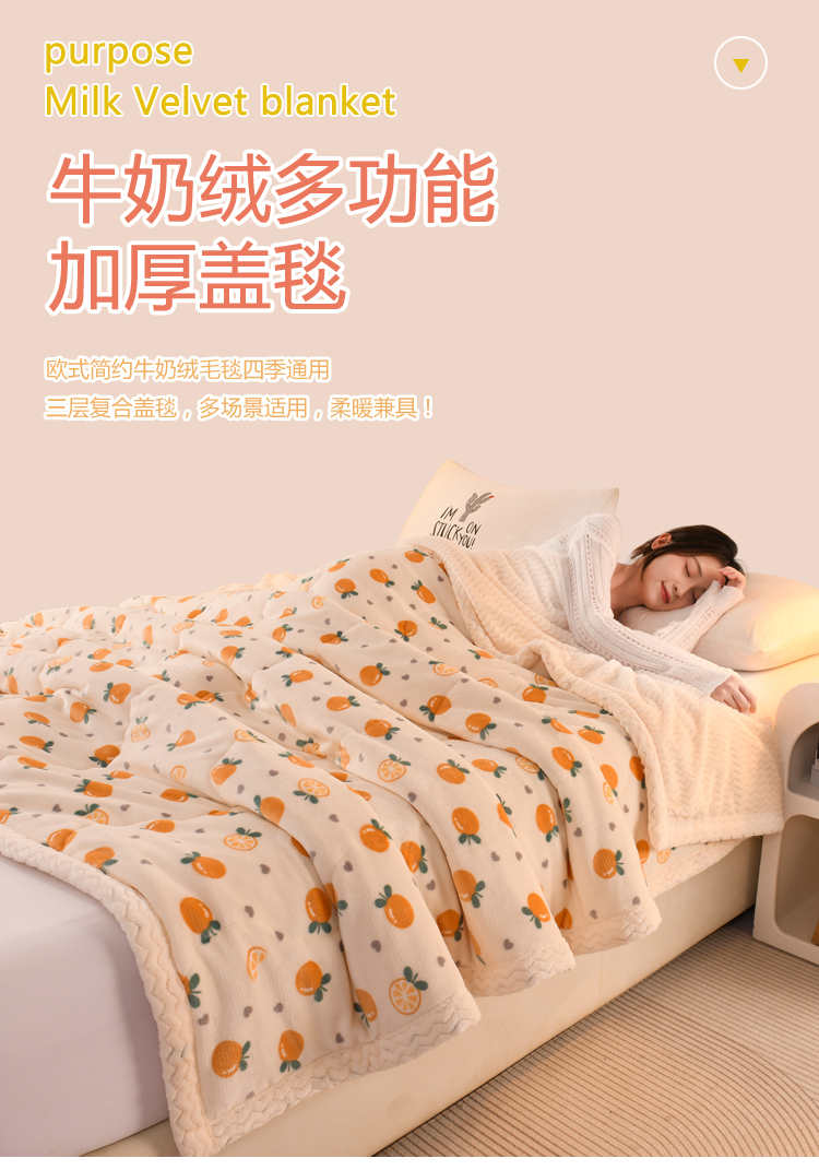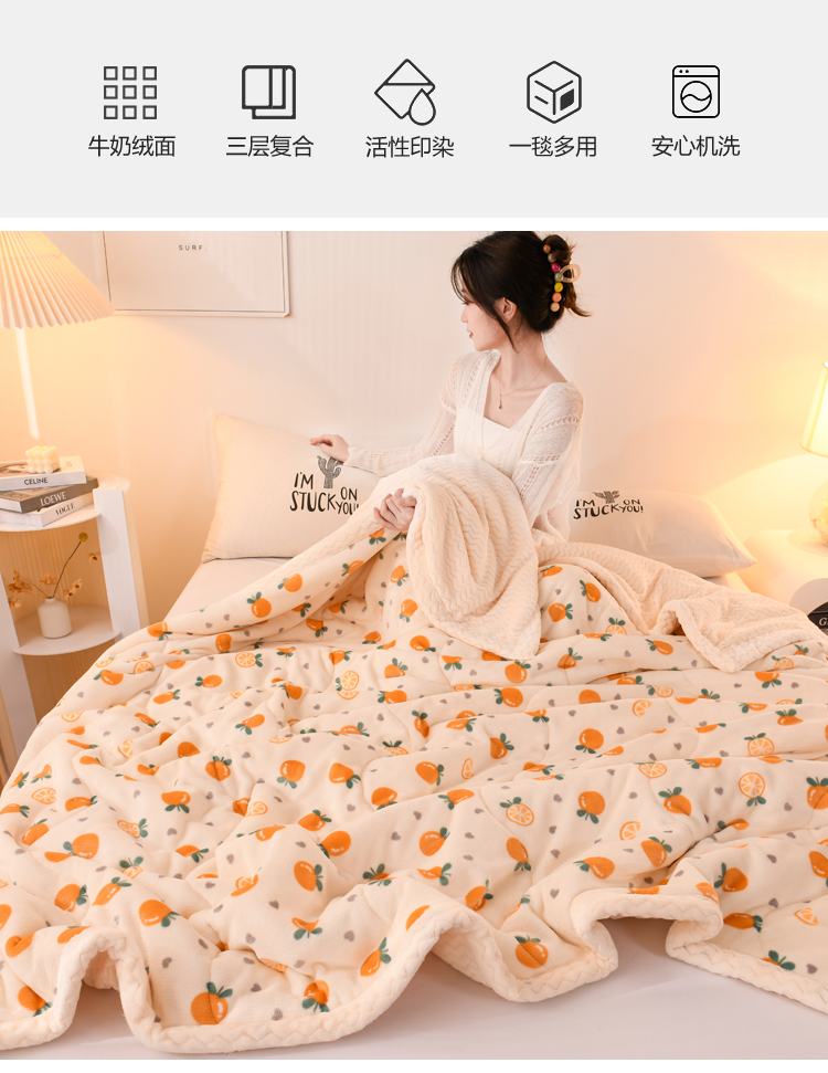 电商爆款·三层夹棉牛奶绒印花毛毯卡通秋冬午睡毯多功能盖毯可机洗毯子