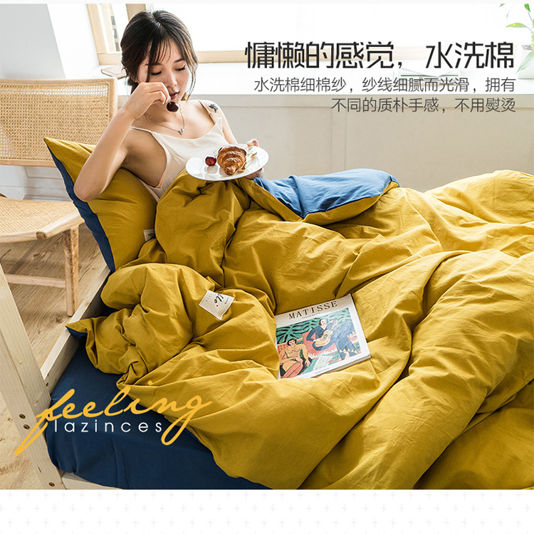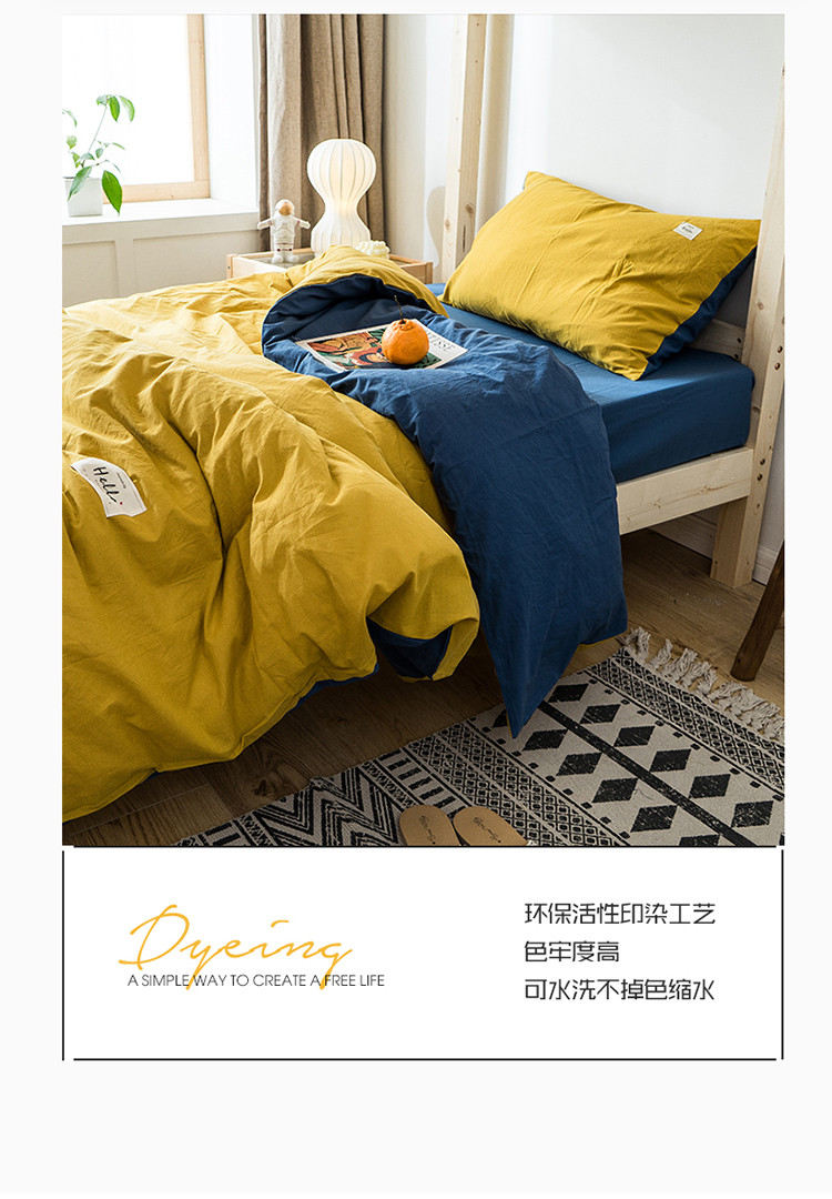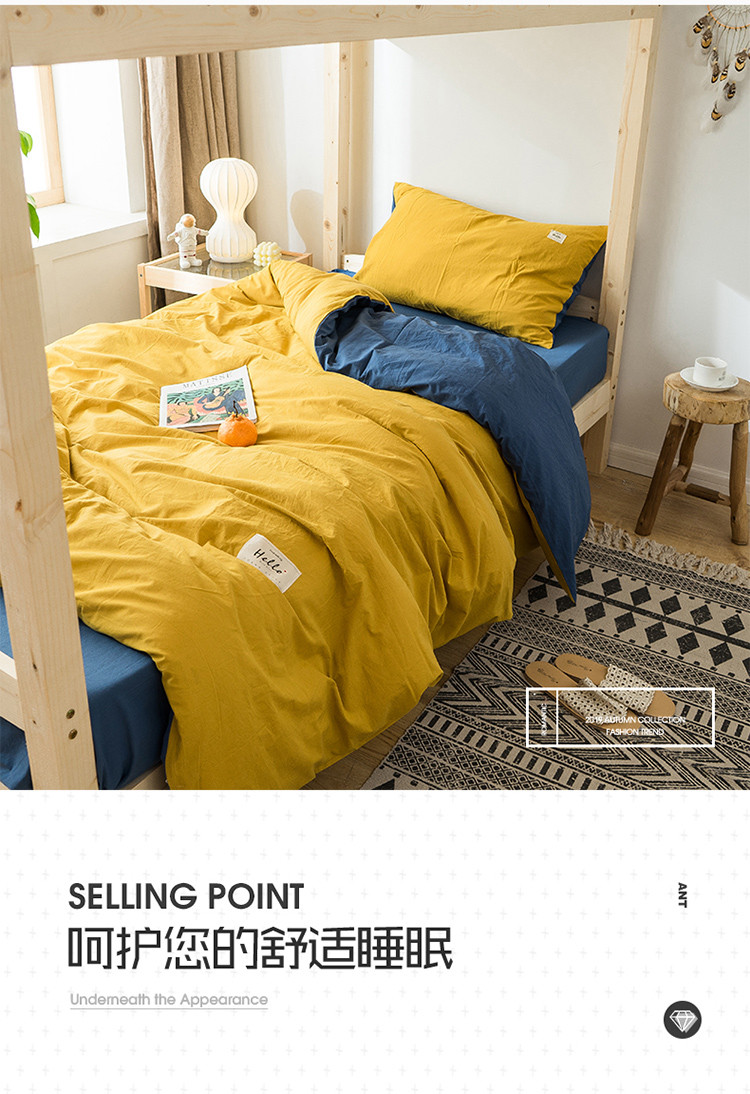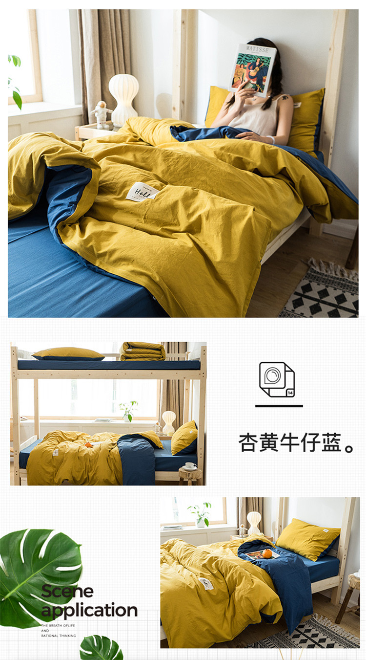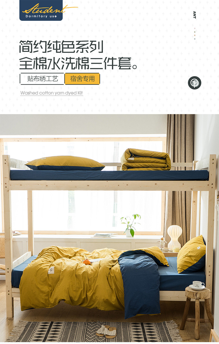 商品名称:蓝巢家纺 全棉水洗棉学生季三件套 杏黄牛仔蓝