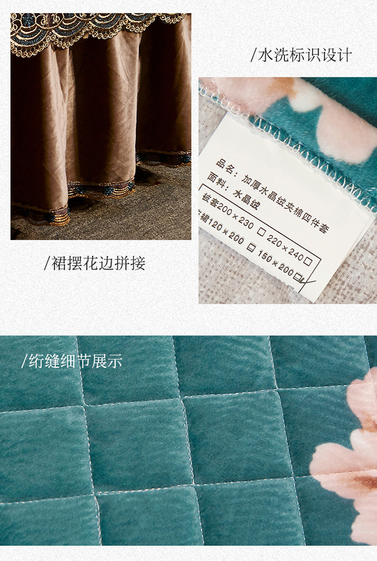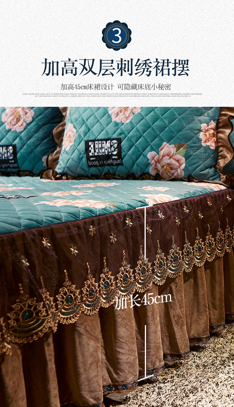 商品名称:宜凡家纺 2019新款水晶绒印花系列单床裙两边 锦瑟年华