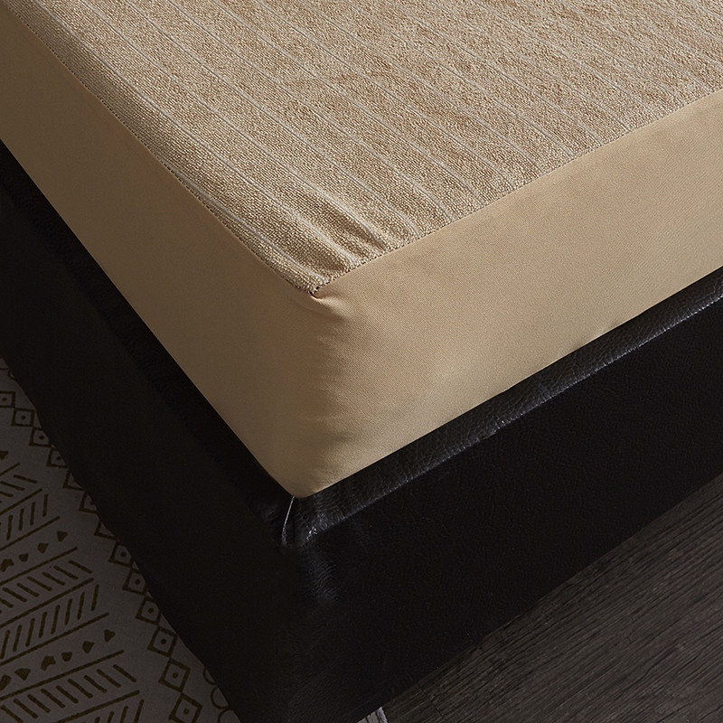 小米笠 2019新款全棉条纹毛巾布防水床笠床罩 条纹咖