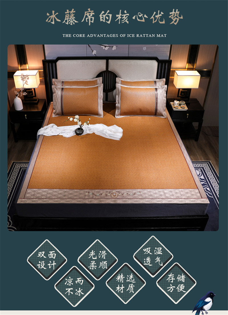 【高档双面席】双面凉席三件套古藤席可折叠冰丝席冰藤席席子竹席