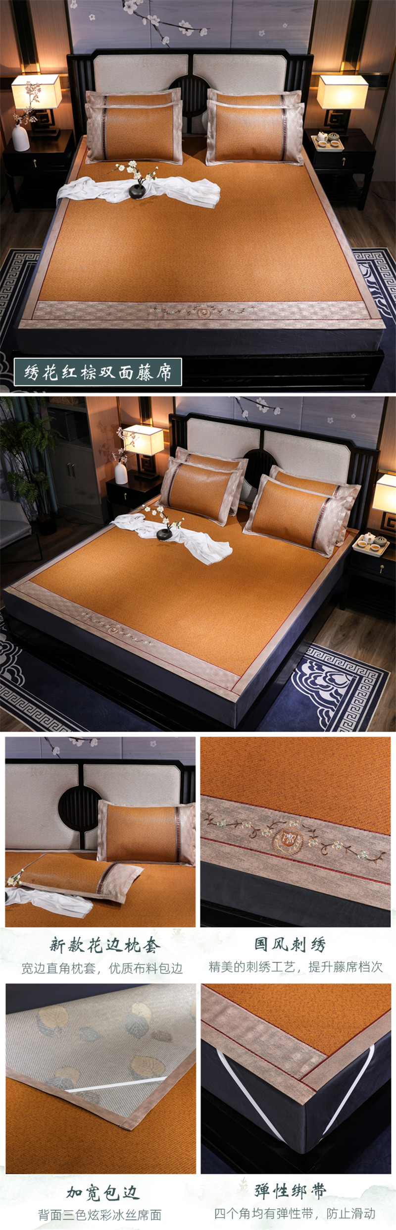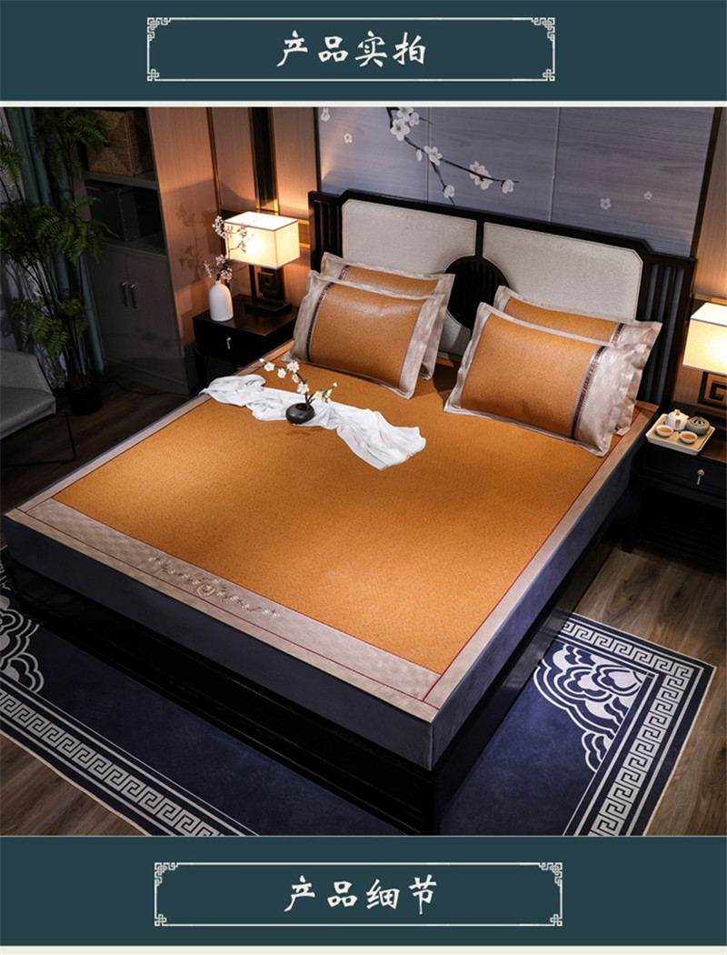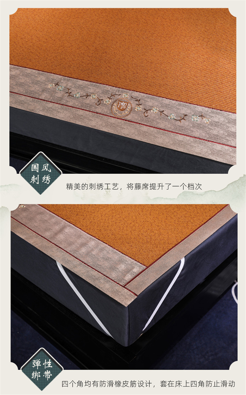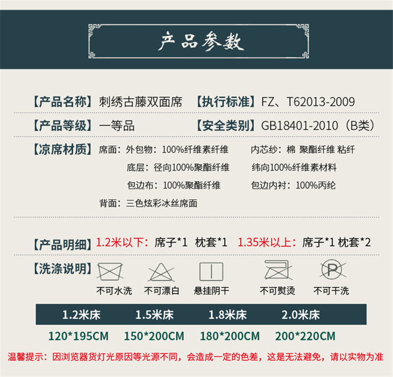 包含:一条刺绣古藤席+枕套+水洗标+合格证+手提包装