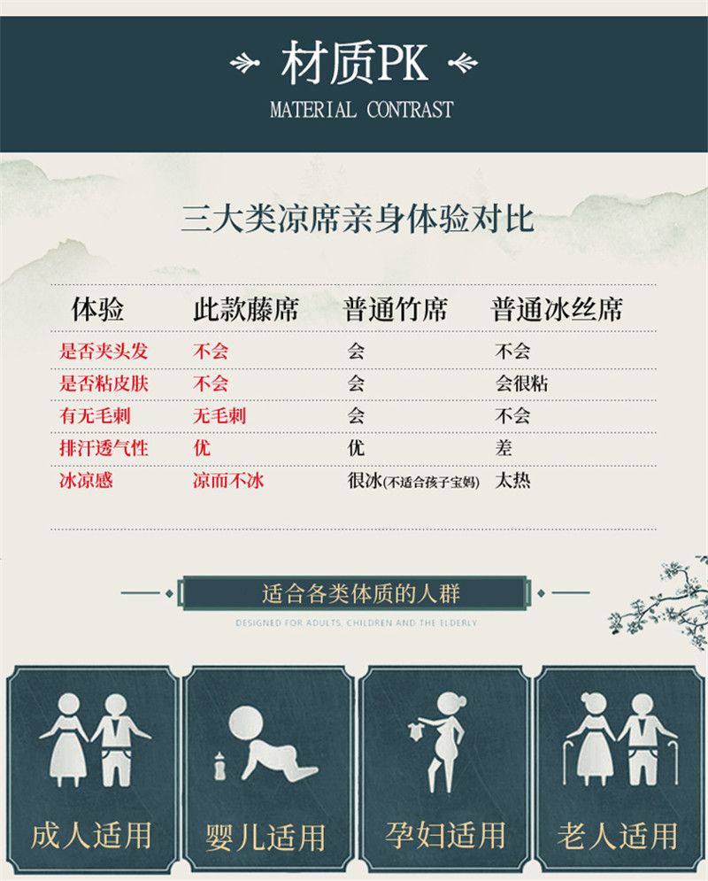 商品名称:【高档双面席】双面凉席三件套古藤席可折叠冰丝席冰藤席席子竹席
