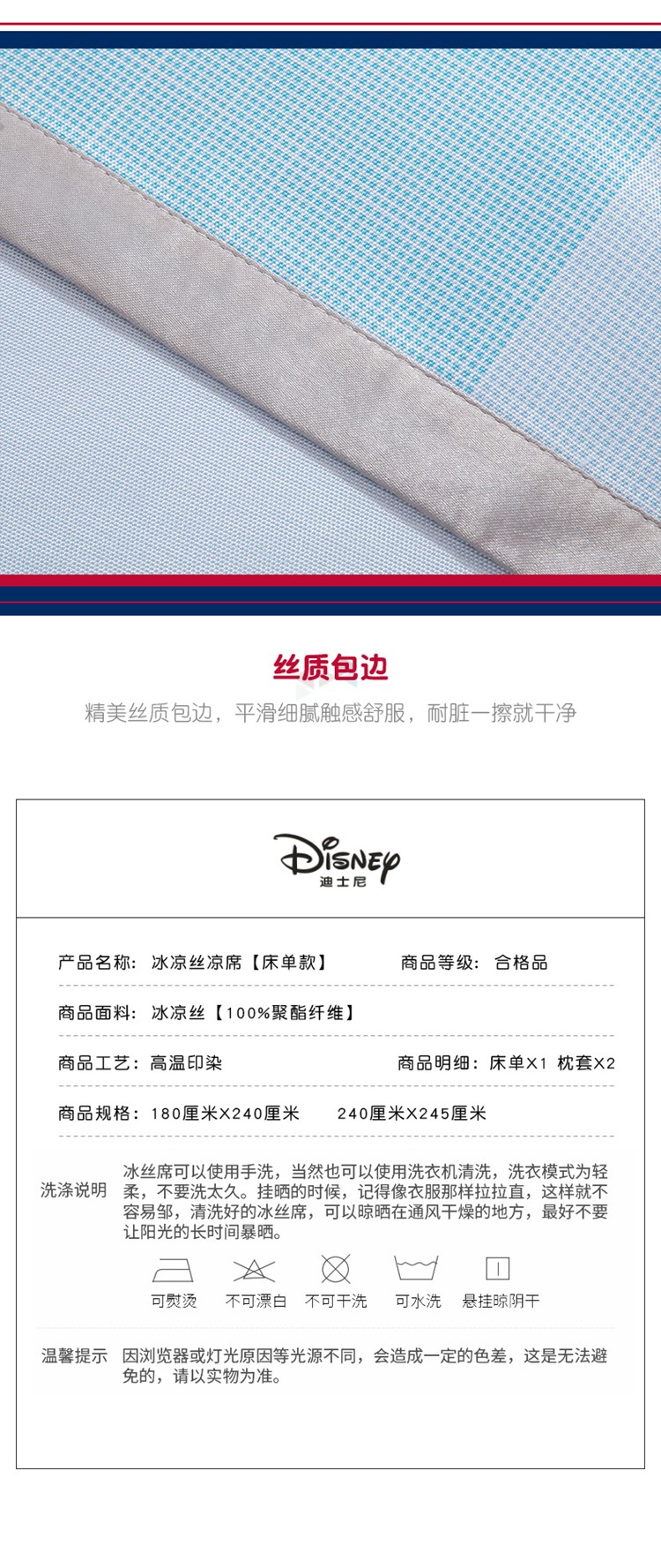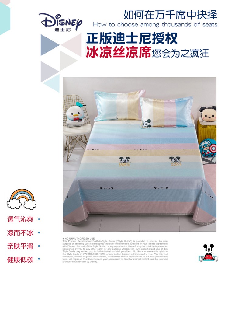 商品名称:小芽 迪士尼床单款冰丝凉席 彩条米奇