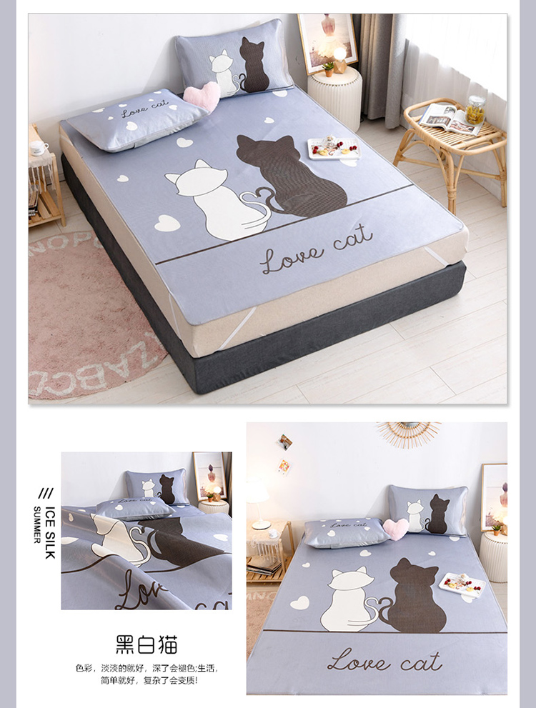 佰亿莱2024新款数码印花卡通大版数码冰丝席凉席 黑白猫