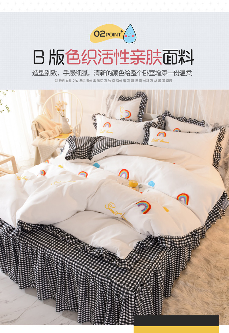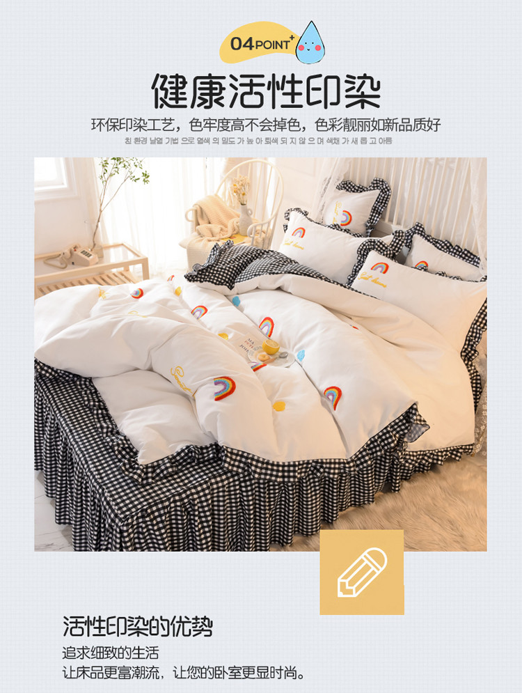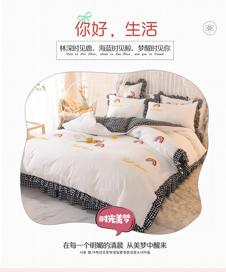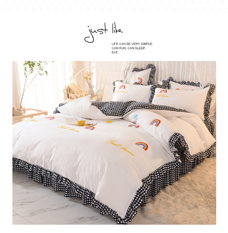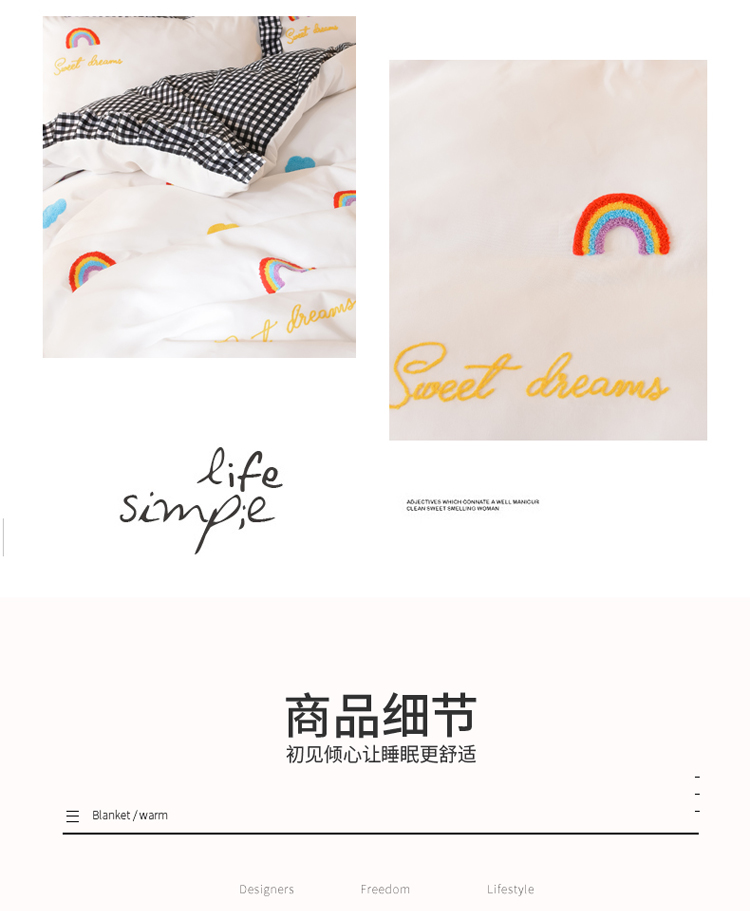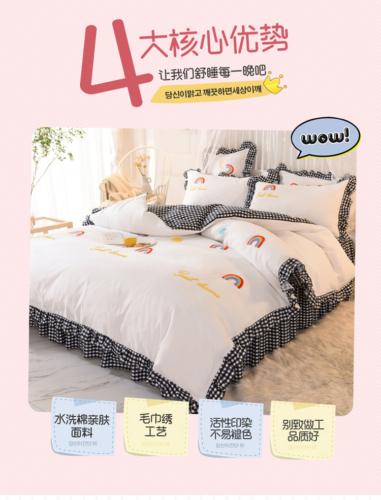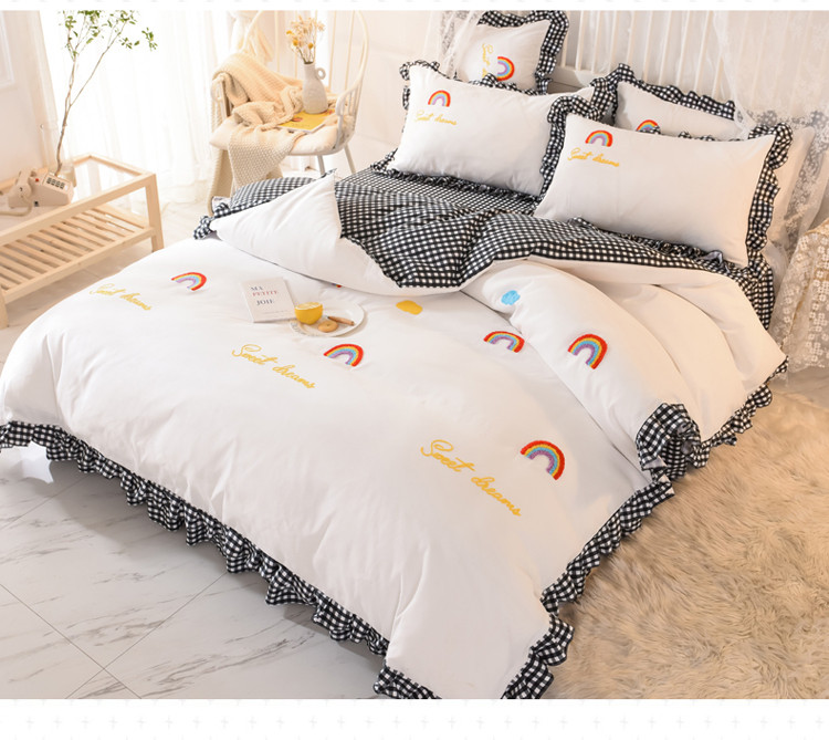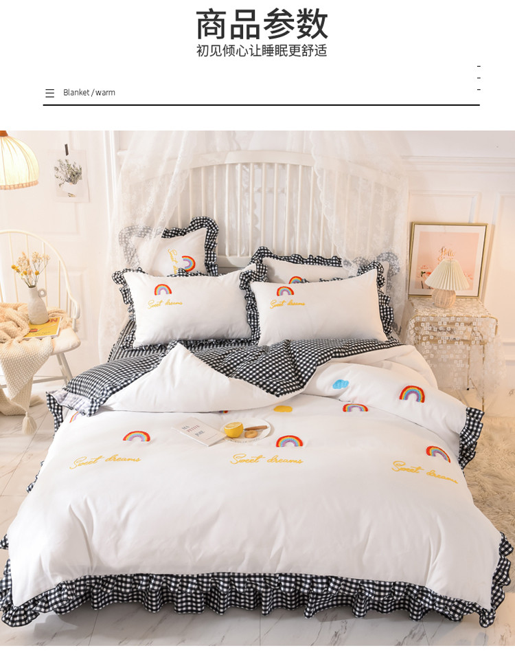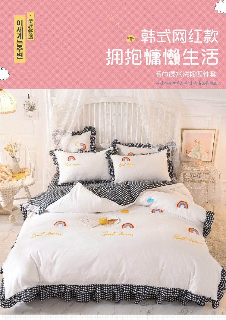 当前位置: 91家纺网 > 商品网购 > 床品套件 > 四件套 > 全棉普通四件套 > 欧冠家纺 2020新款毛巾绣色织四件套 彩虹-黑白