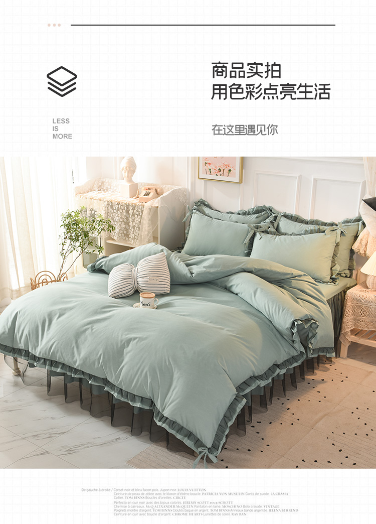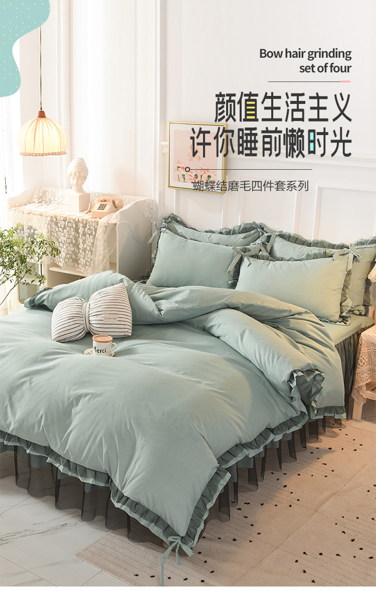 商品名称:芭比蔓 2024新款韩版蕾丝磨毛床裙四件套 梦境-橄榄绿
