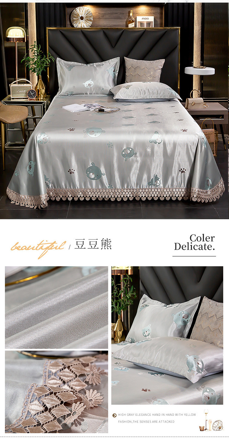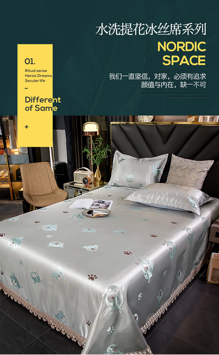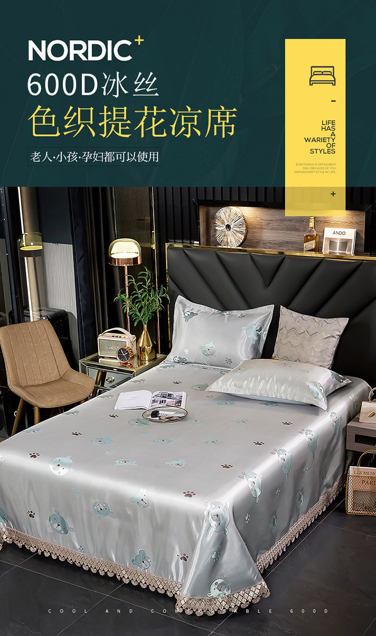 朗莎家纺 600D冰丝色织提花冰丝席三件套 豆豆熊