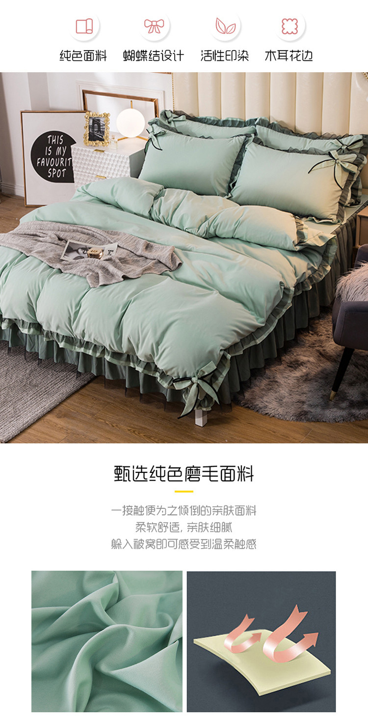 商品名称:金米诺 2020加厚韩版花边水洗棉磨毛四件套 橄榄绿