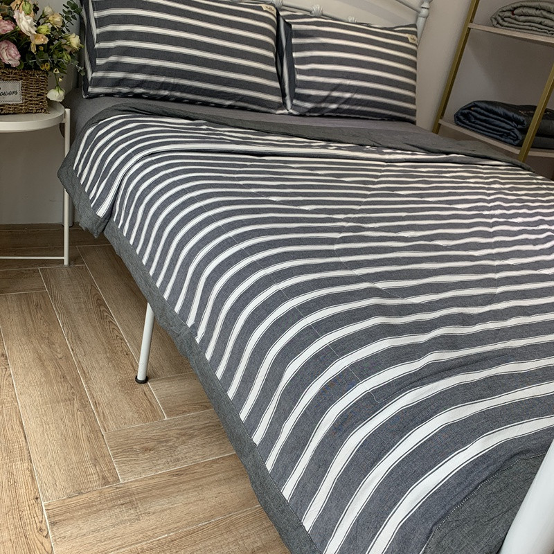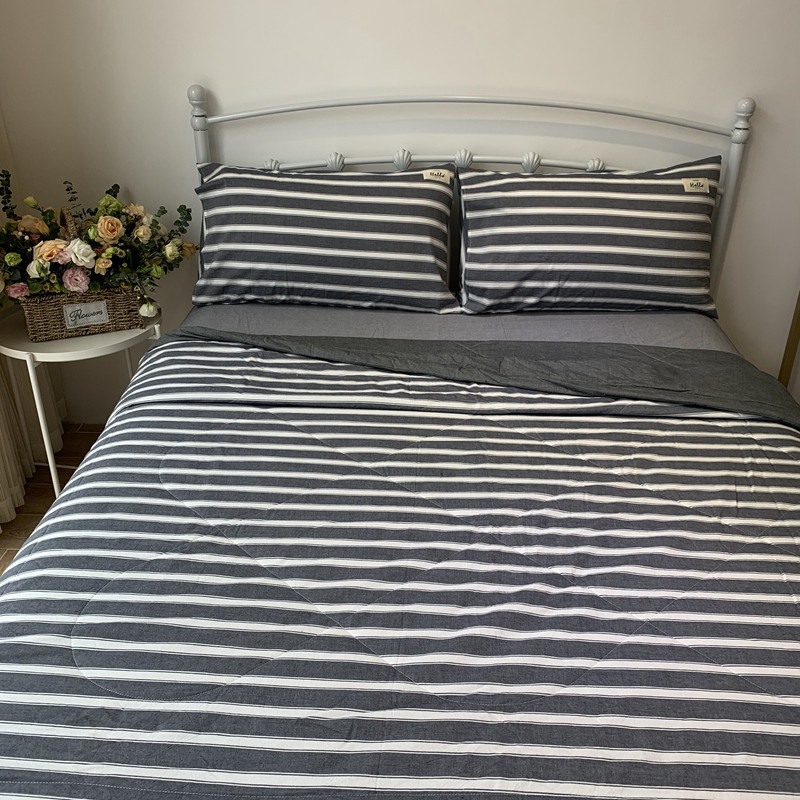 商品名称:久典家居 2020新款色织水洗棉夏被 中灰条
