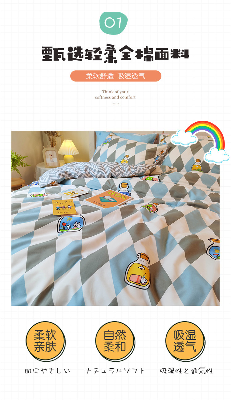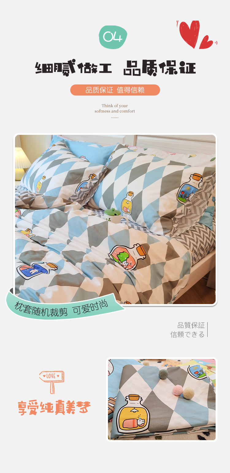 (总)田野 2022新13372全棉印花小清新四件套纯棉床笠,比心,哈喽虎-黄,哈喽虎-蓝,铃兰花,绿茵,梦的旋律,墨璃,晚安虎,印象