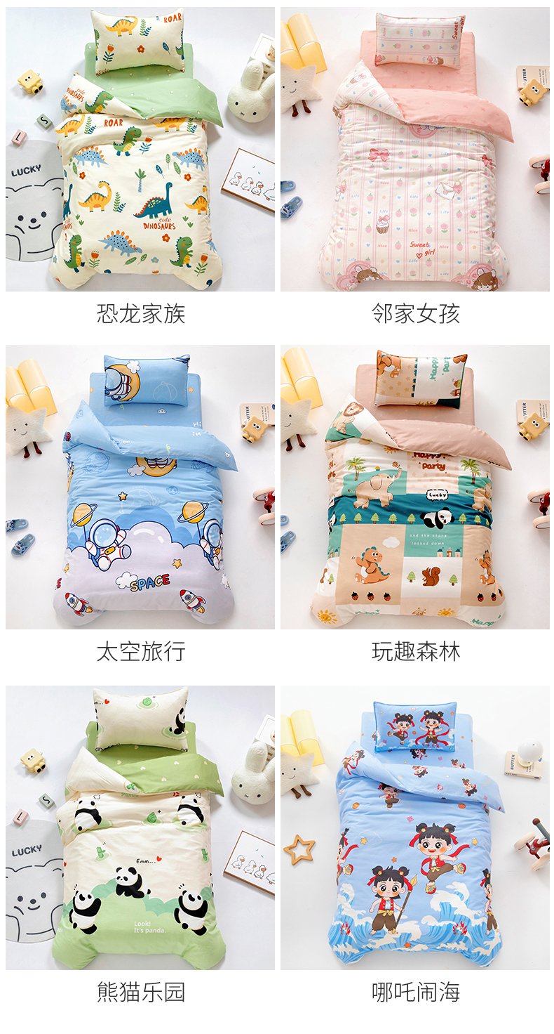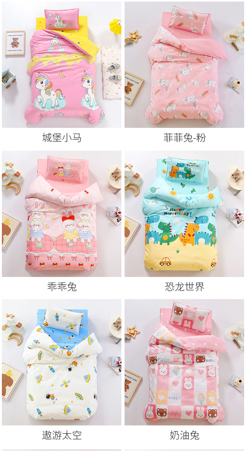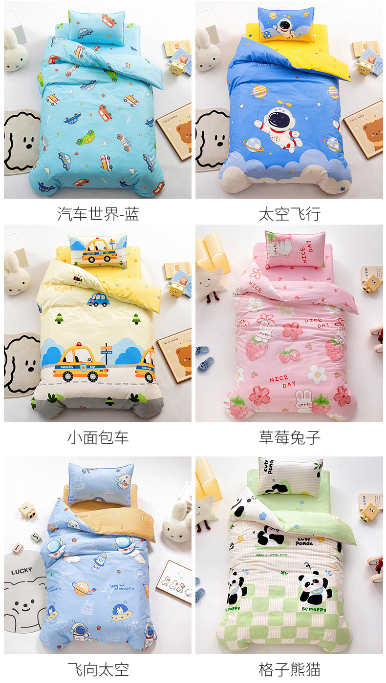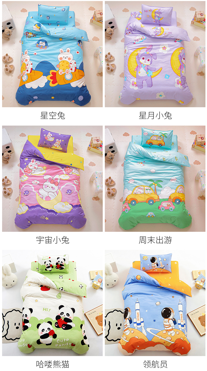 (总)吉咪兔家纺 2025新款全棉纯棉幼儿园三件套儿童被褥六件套宝宝午睡入园婴儿床床上用品,遨游太空,飞向太空,格子熊猫,恐龙家族,恐龙星球,邻家女孩,奶油草莓,奶油兔,太空旅行,玩趣森林,熊猫乐园