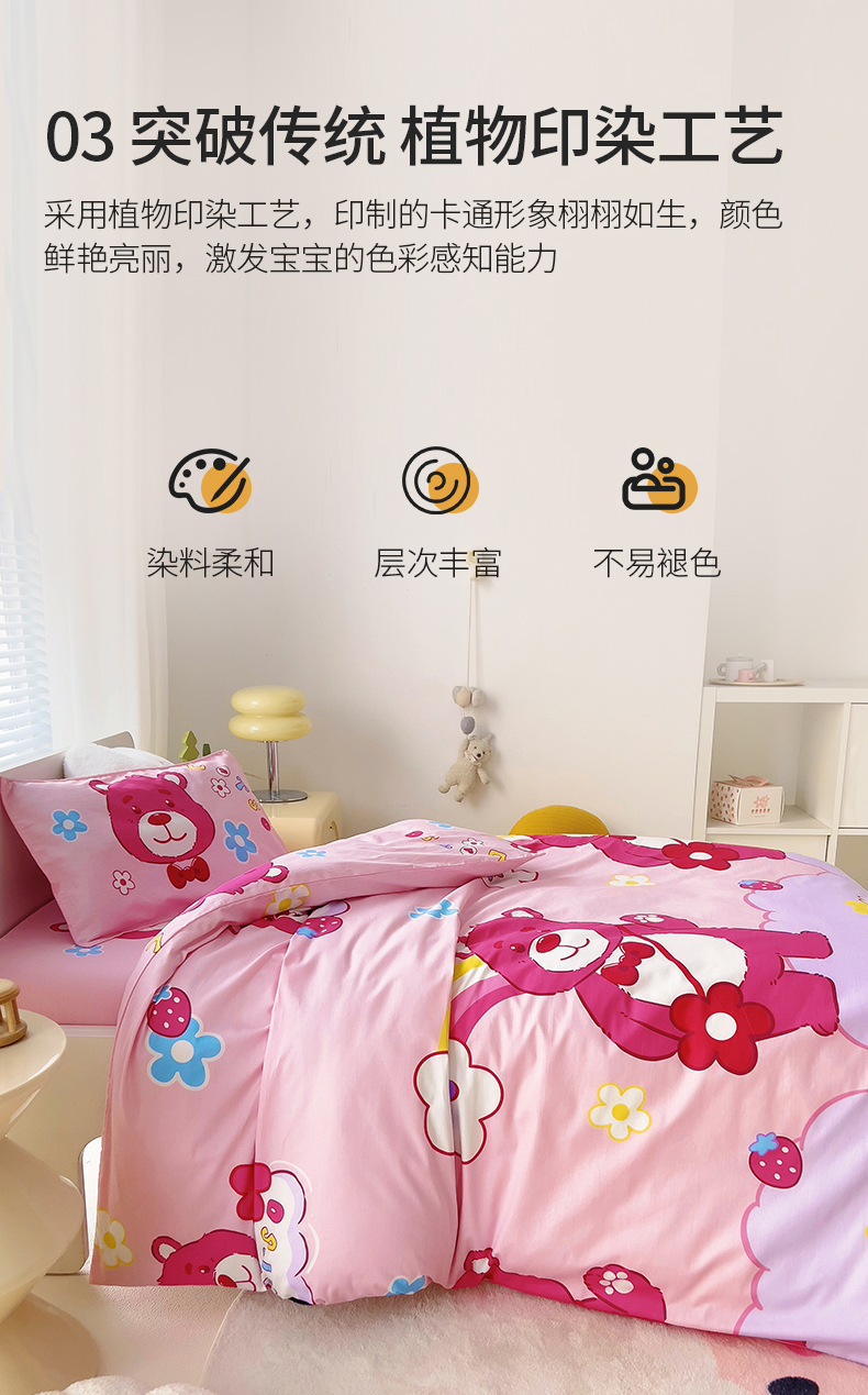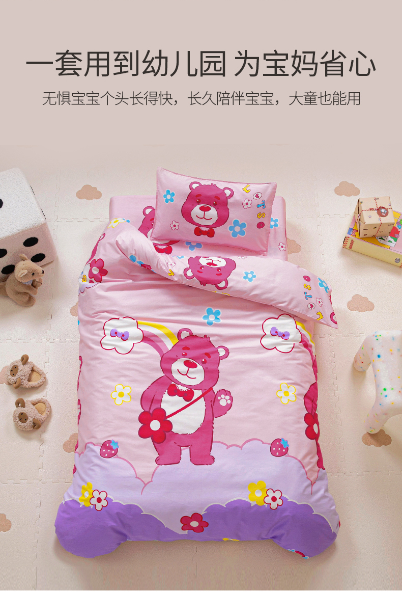 2025年新款幼儿园全棉被子三件套宝宝入园纯棉六件套被褥午睡被套草莓甜心,草莓甜心