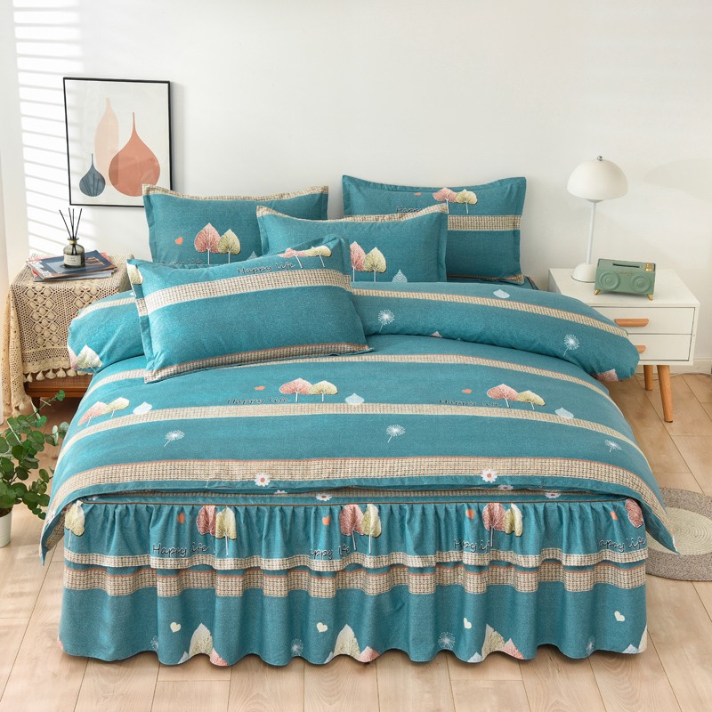 (总)代芙 2023新款加厚磨毛双边床裙四件套