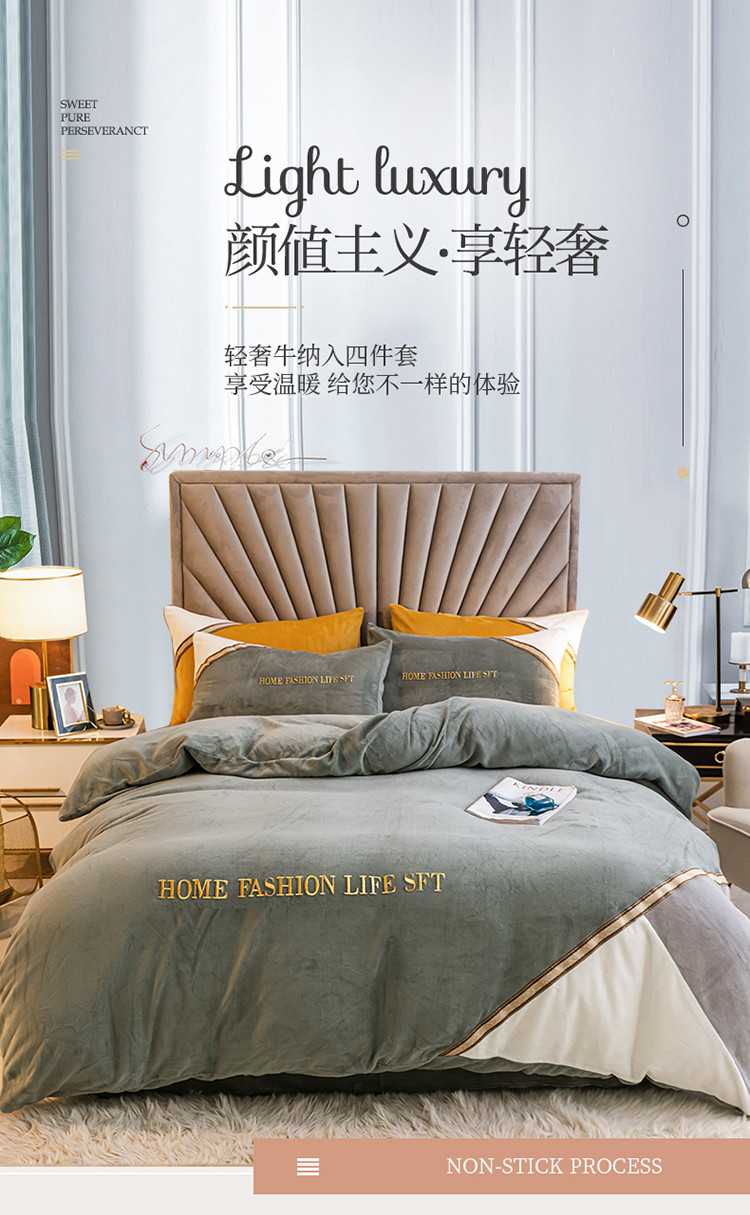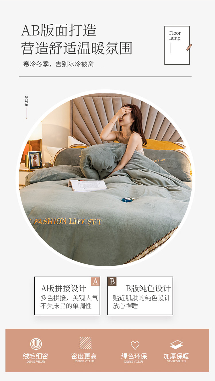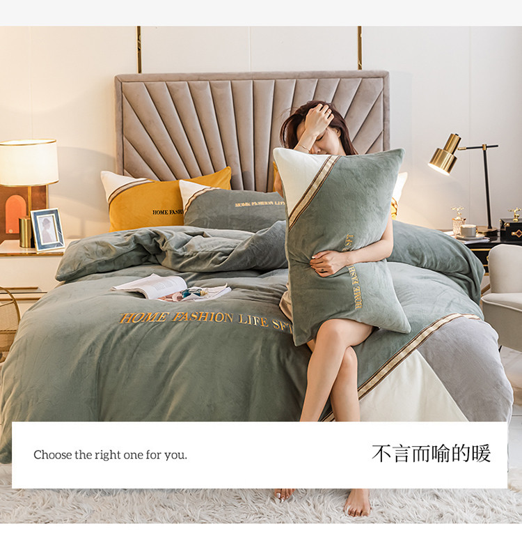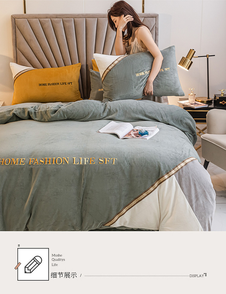 索飞特 2022新款牛奶绒拼角工艺款四件套 绒-抹茶色