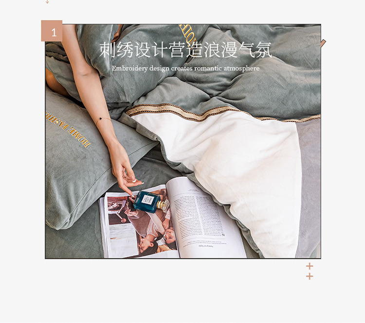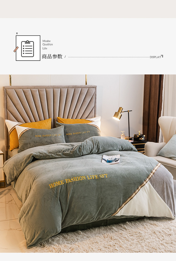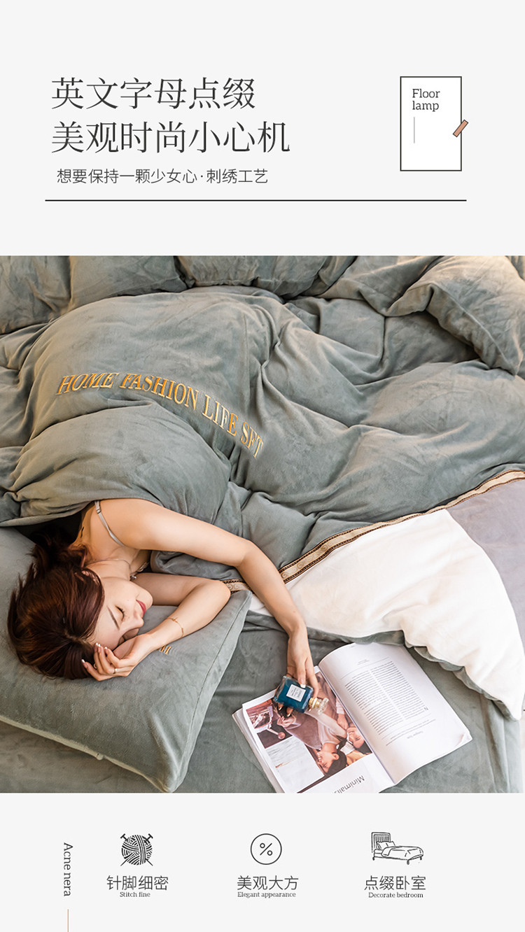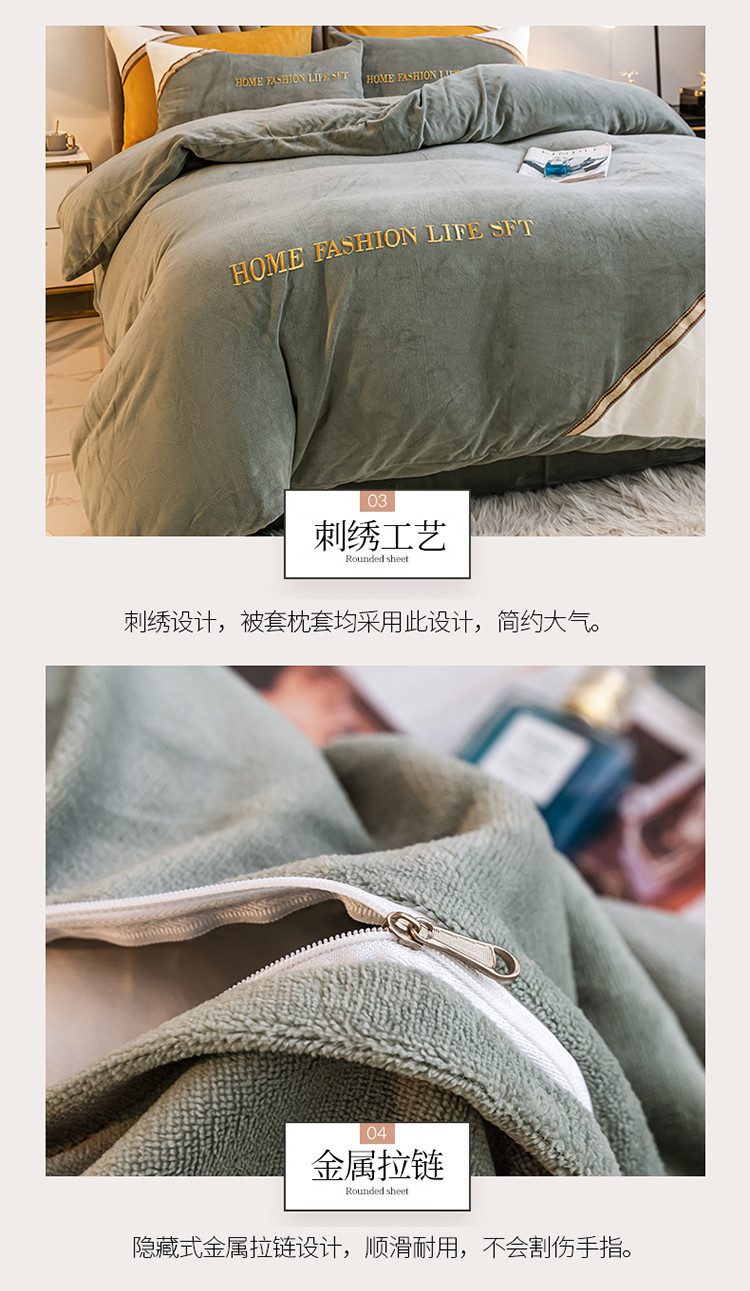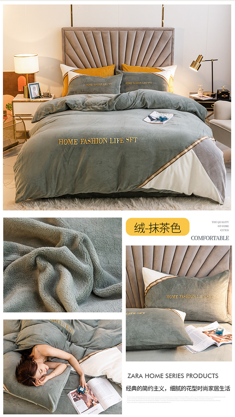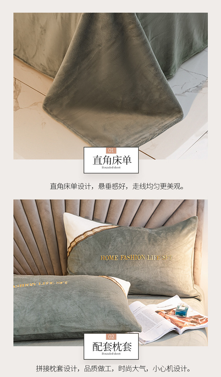 商品名称:索飞特 2022新款牛奶绒拼角工艺款四件套 绒-抹茶色