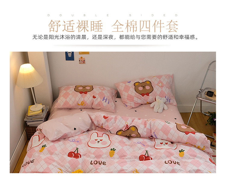 (总)窝米 2020春夏新品全棉13372四件套小波西风系列,草莓酱,木槿,小花花,小尤里