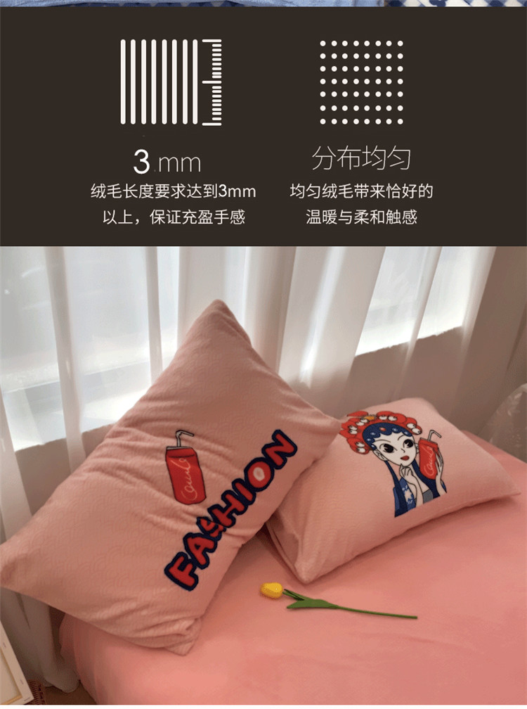 • 91家纺网 家纺一手货源 找家纺 三朵2020新款大版牛奶绒枕套/对 心心相应