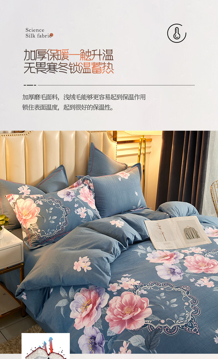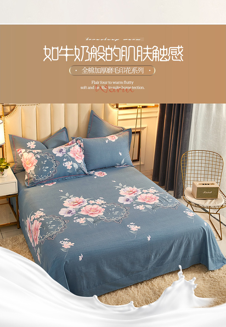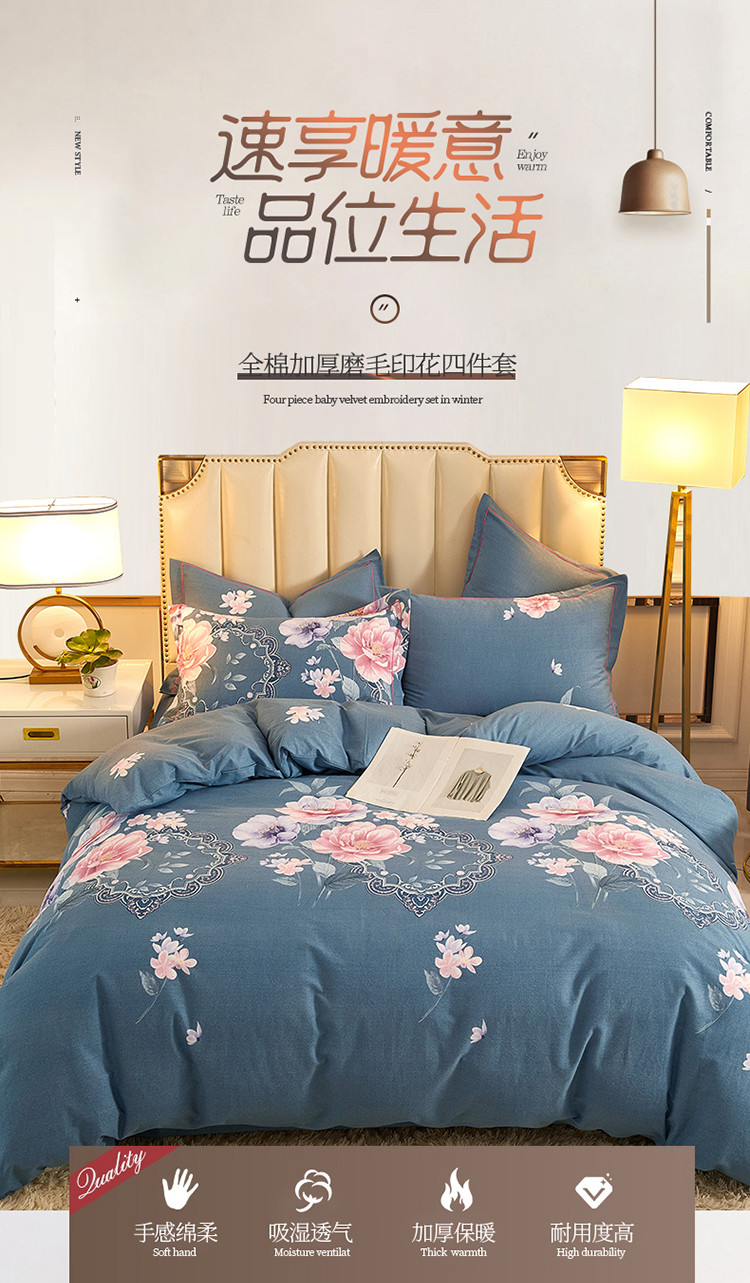 当前位置: 91家纺网 > 商品网购 > 床品套件 > 四件套 > 普通磨毛四件套 > 雲归梦 2020新款全棉加厚磨毛四件套 如花盛开-蓝