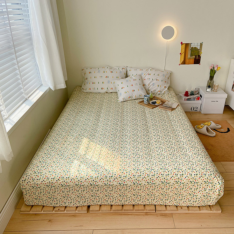 (总)尺素 全棉40支喷气13372韩国ins设计师四件套,花舞,篱落粉,篱落黄,落英,派对,童趣,涂鸦,小粉兔,雪地熊