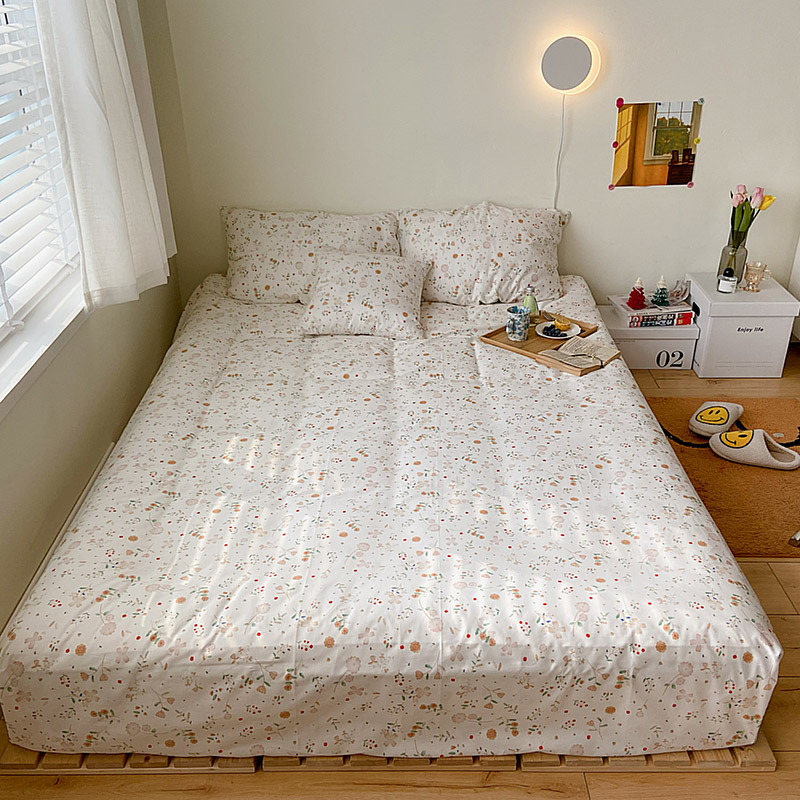 (总)尺素 2026田园小清新纯棉四件套出口韩国ins博主风全棉被套纯色加大床单1.8床笠印花枕套学生宿舍三件套,春不晚 桃粉,花似锦 奶白,紫鸢千夏紫