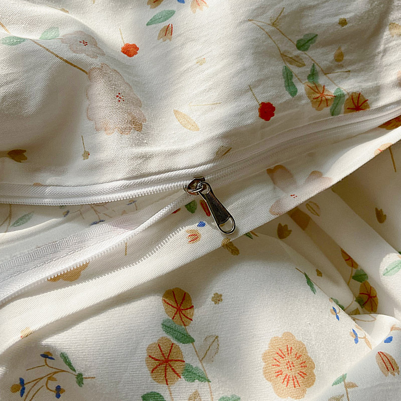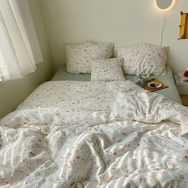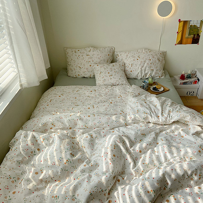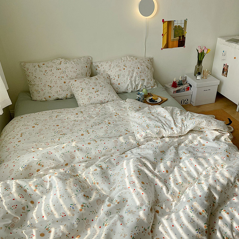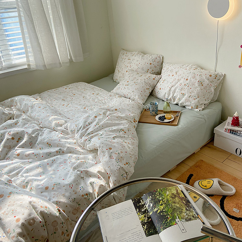 (总)尺素 2026田园小清新纯棉四件套出口韩国ins博主风全棉被套纯色加大床单1.8床笠印花枕套学生宿舍三件套,春不晚 桃粉,花似锦 奶白,紫鸢千夏紫