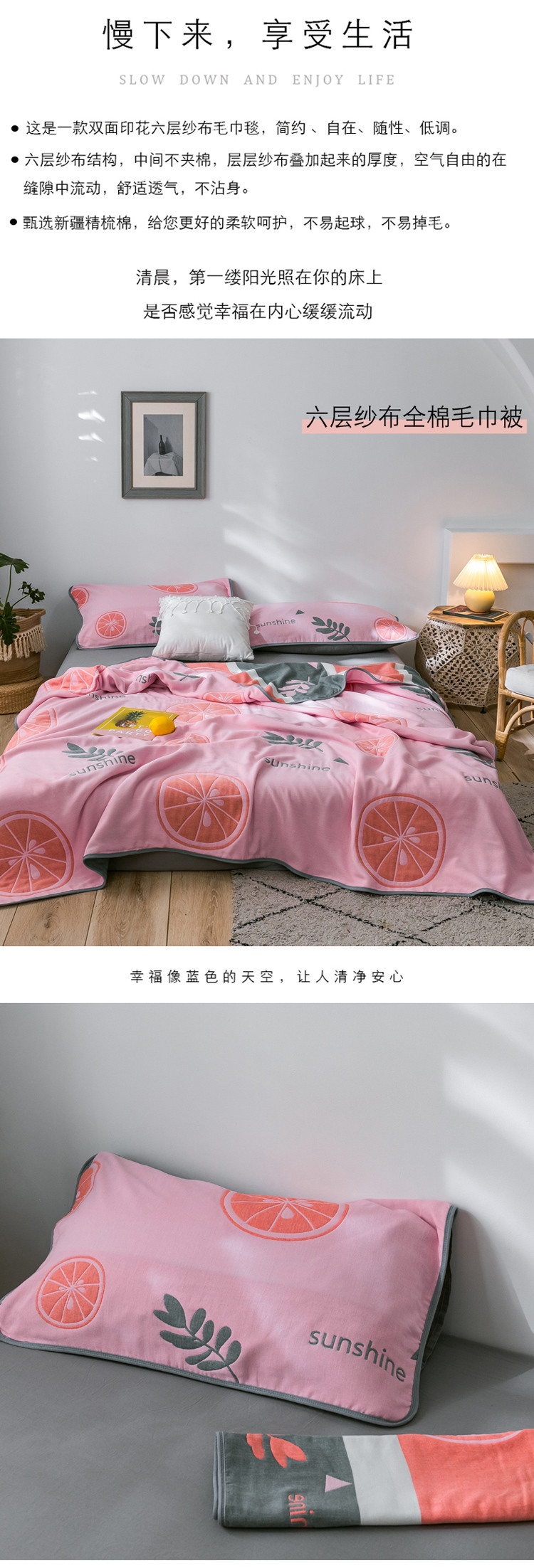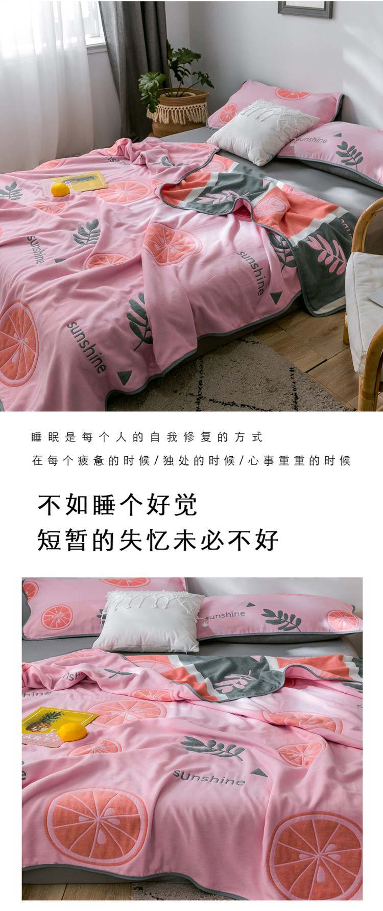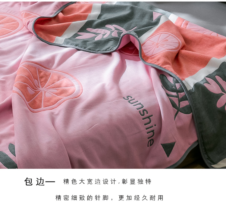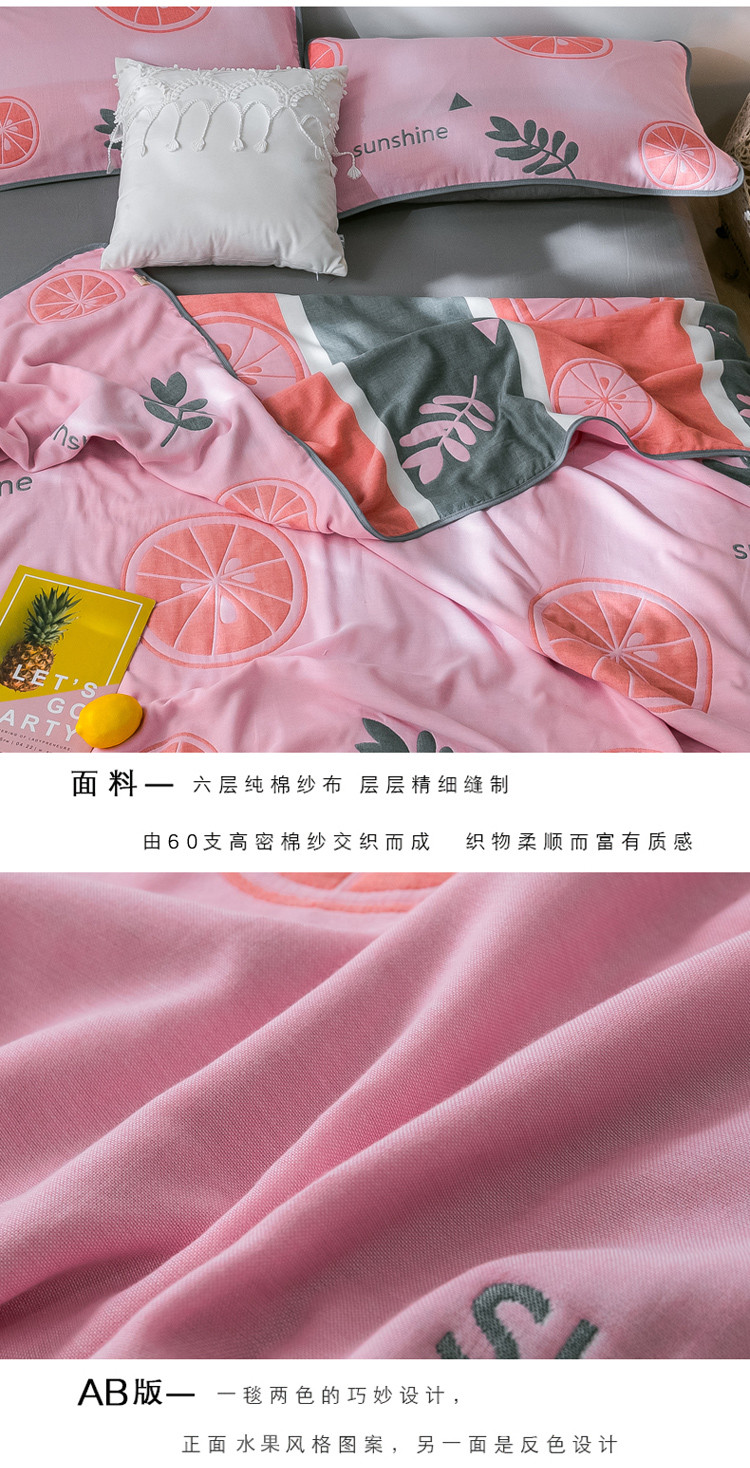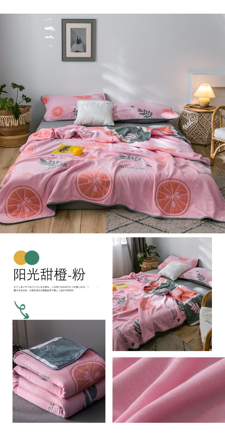 朴尔 2021新款时尚六层全棉纱布毛巾被阳光甜橙-粉