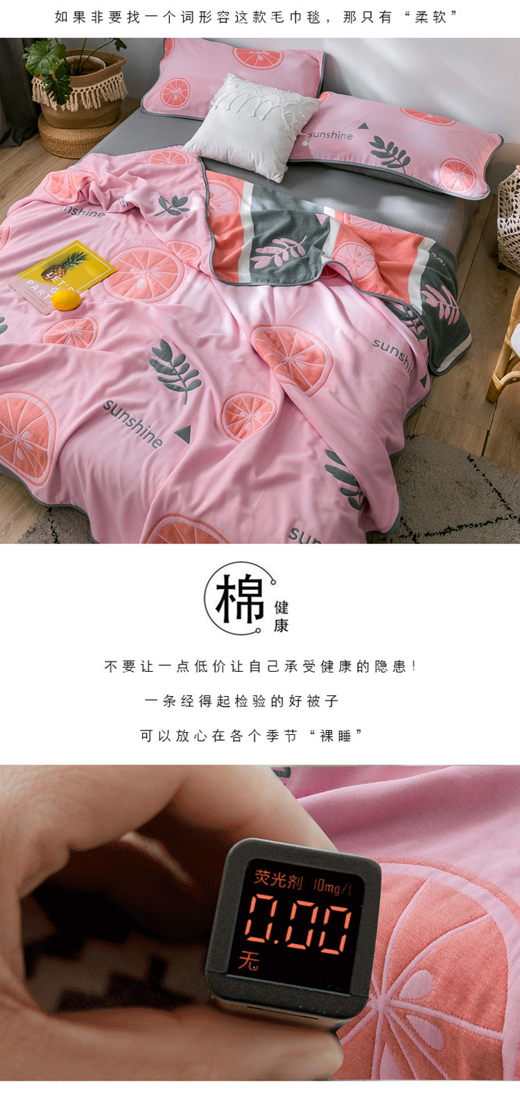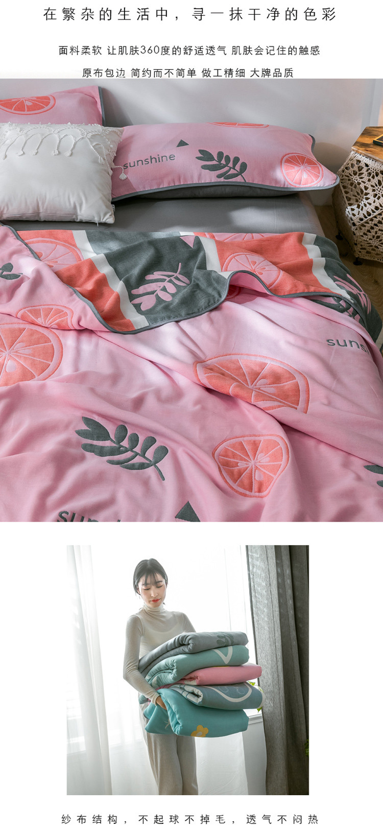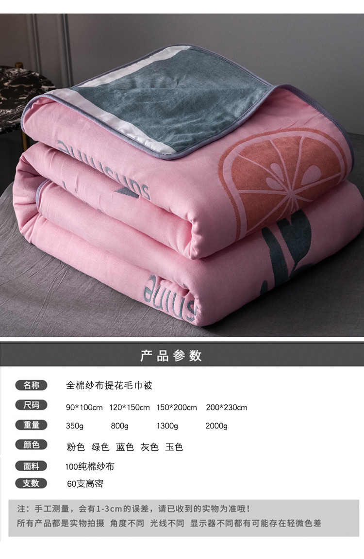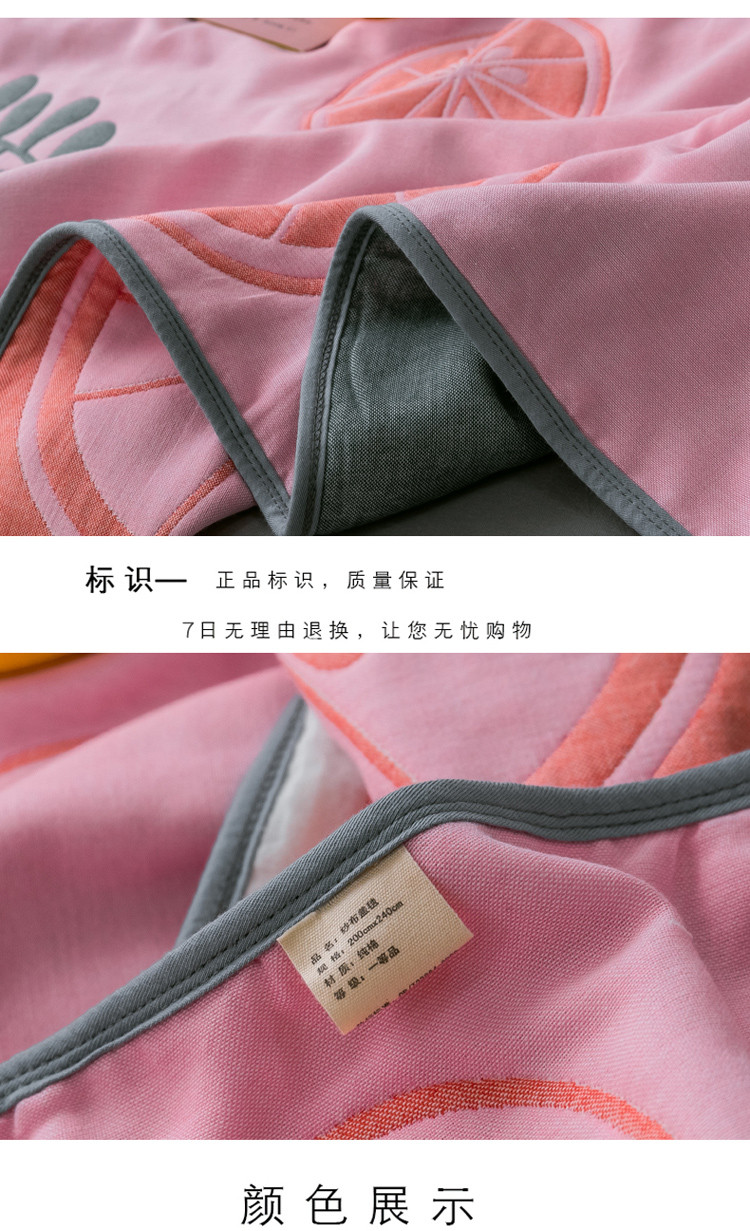 商品名称:朴尔 2021新款时尚六层全棉纱布毛巾被阳光甜橙-粉
