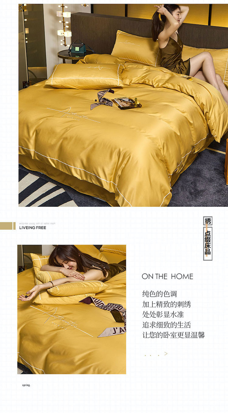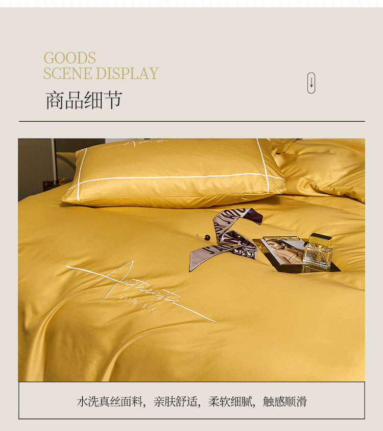 商品名称:凡客 2021春夏新款60支水洗真丝绣花四件套 圣卡罗-柠檬黄