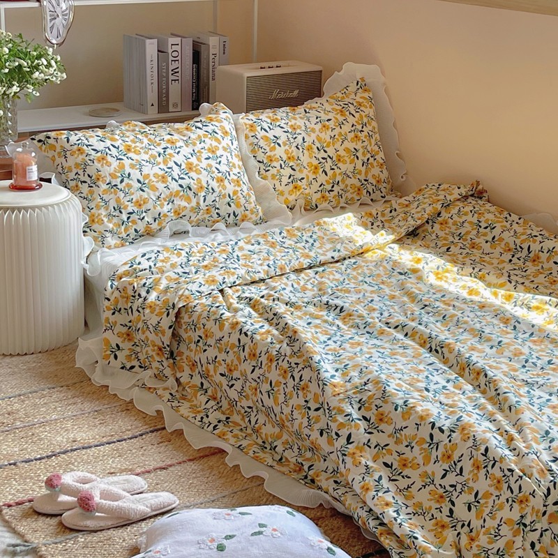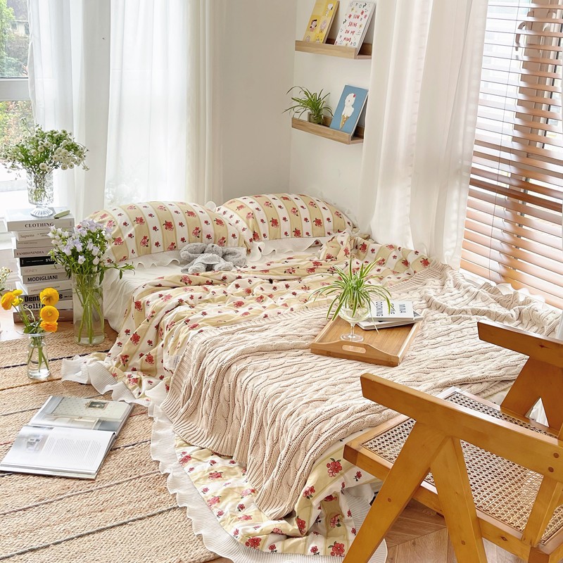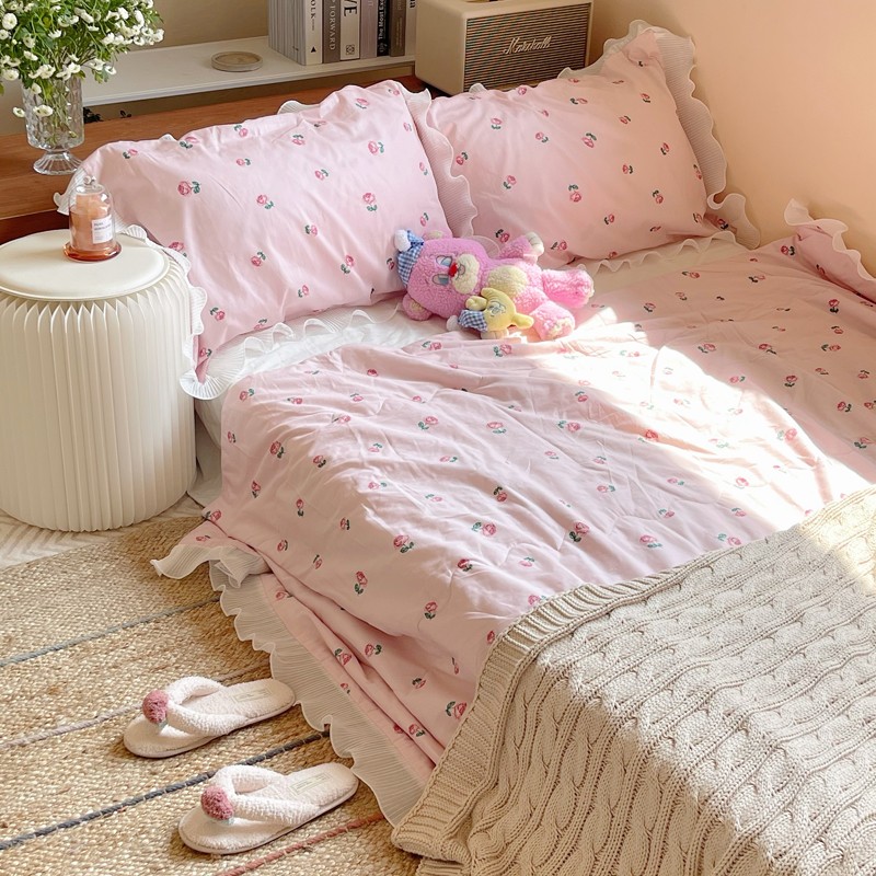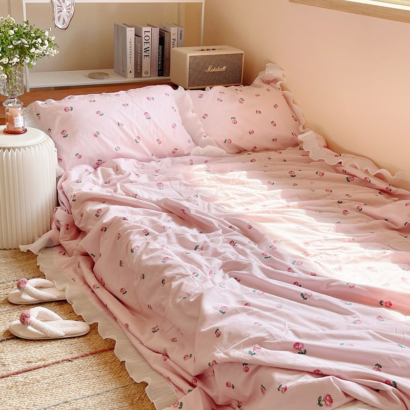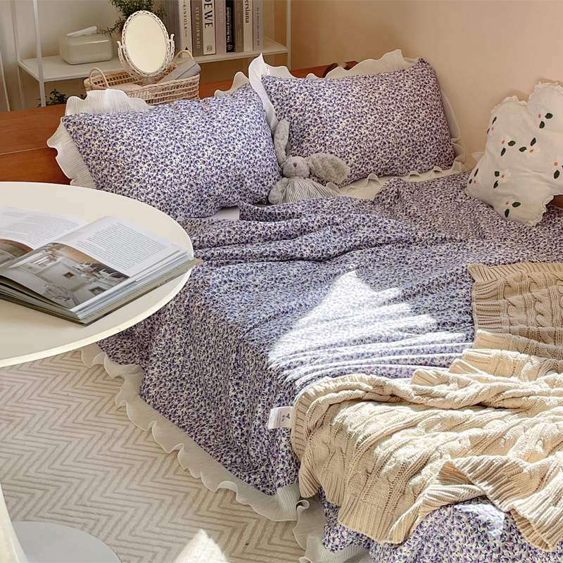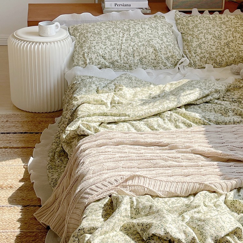 (总)源启生活 2021韩版荷叶边全棉夏被三件套纯棉空调被