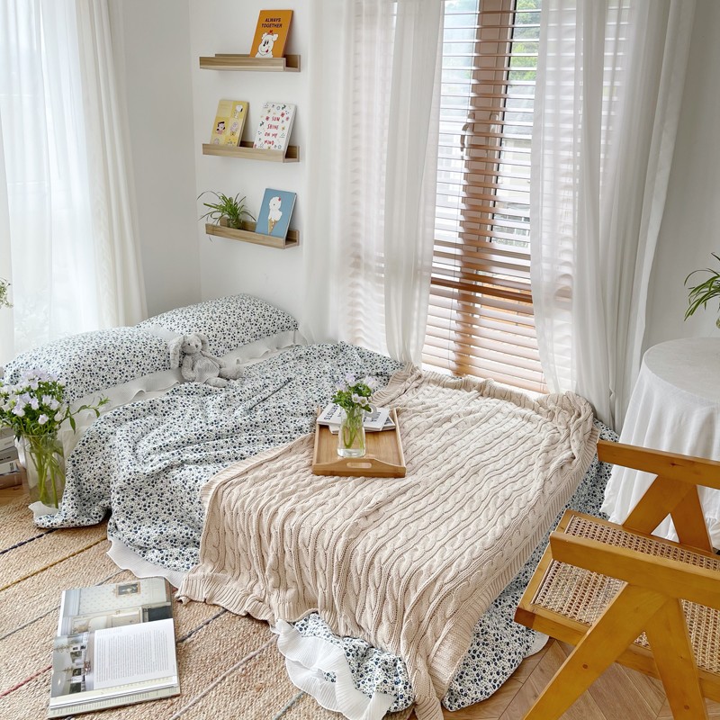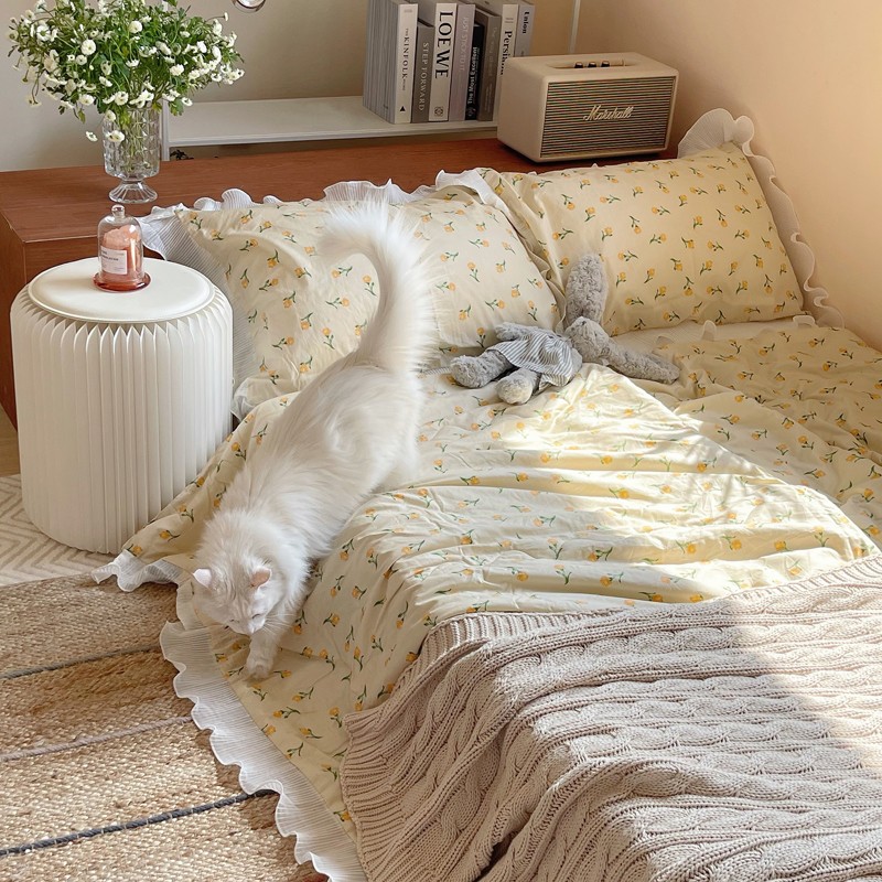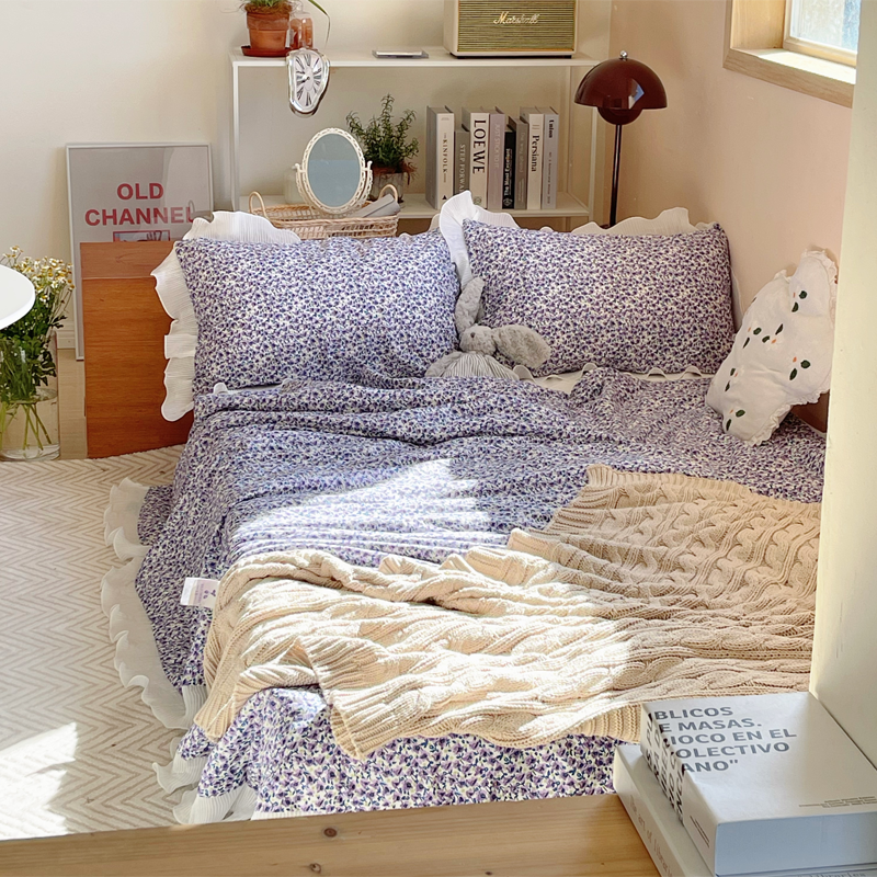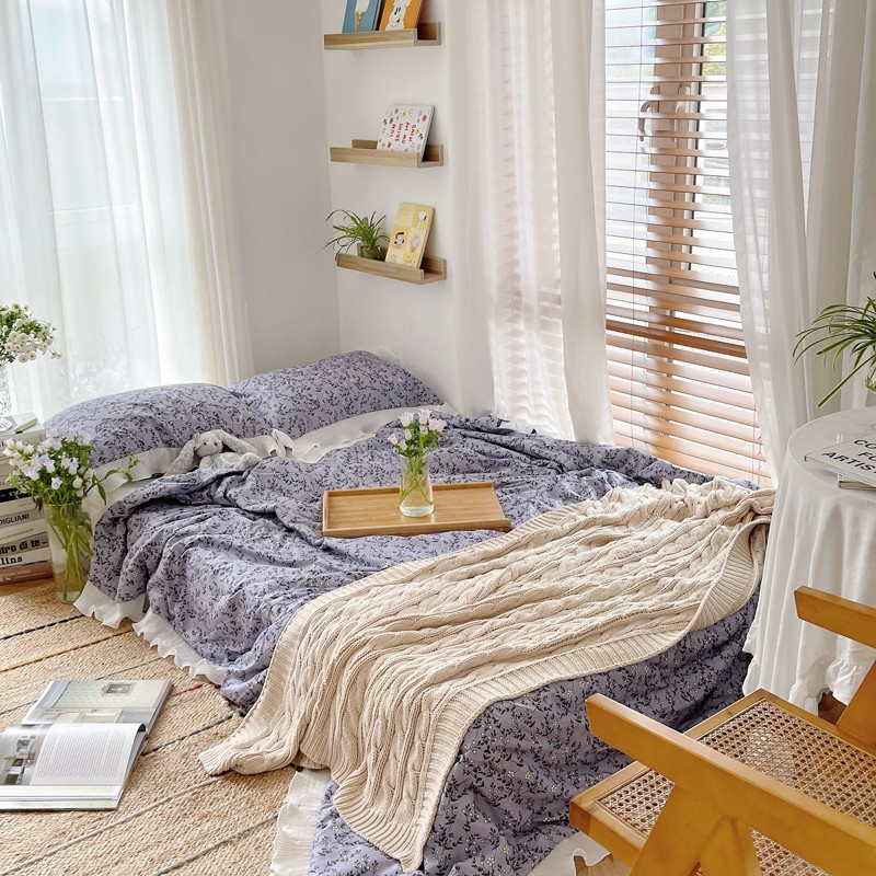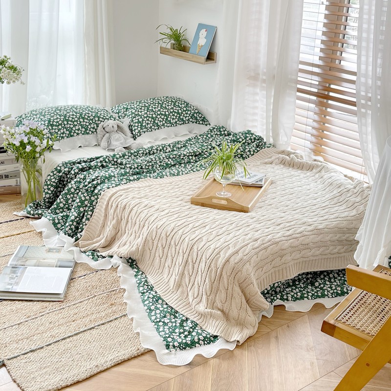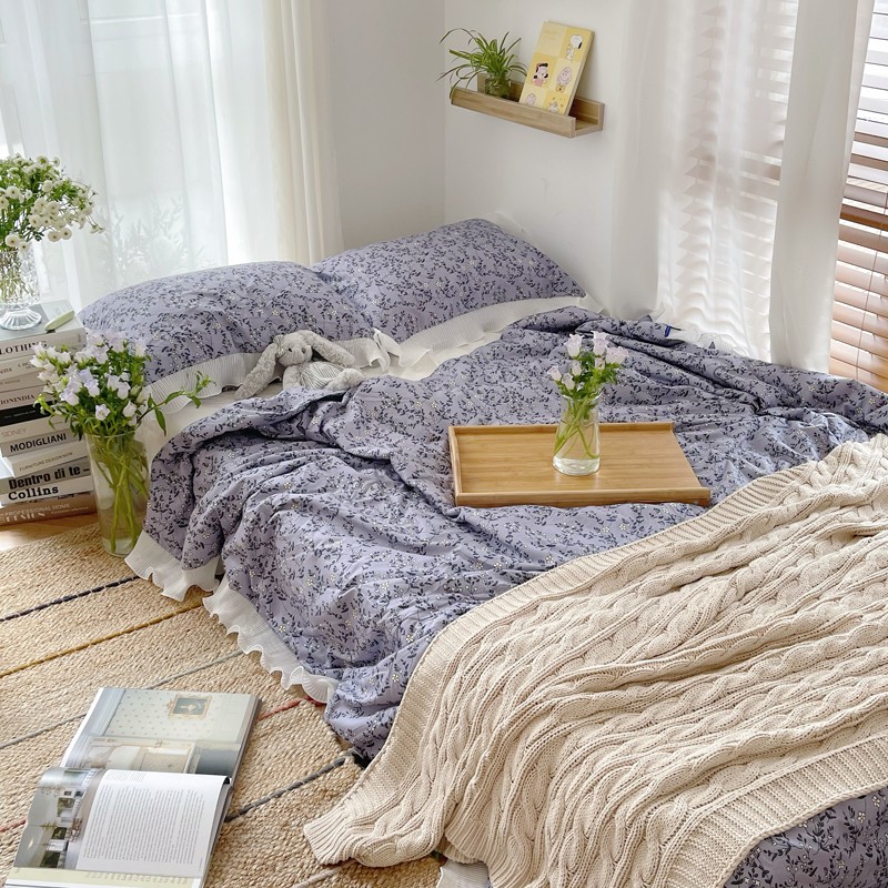 (总)源启生活 2021韩版荷叶边全棉夏被三件套纯棉空调被