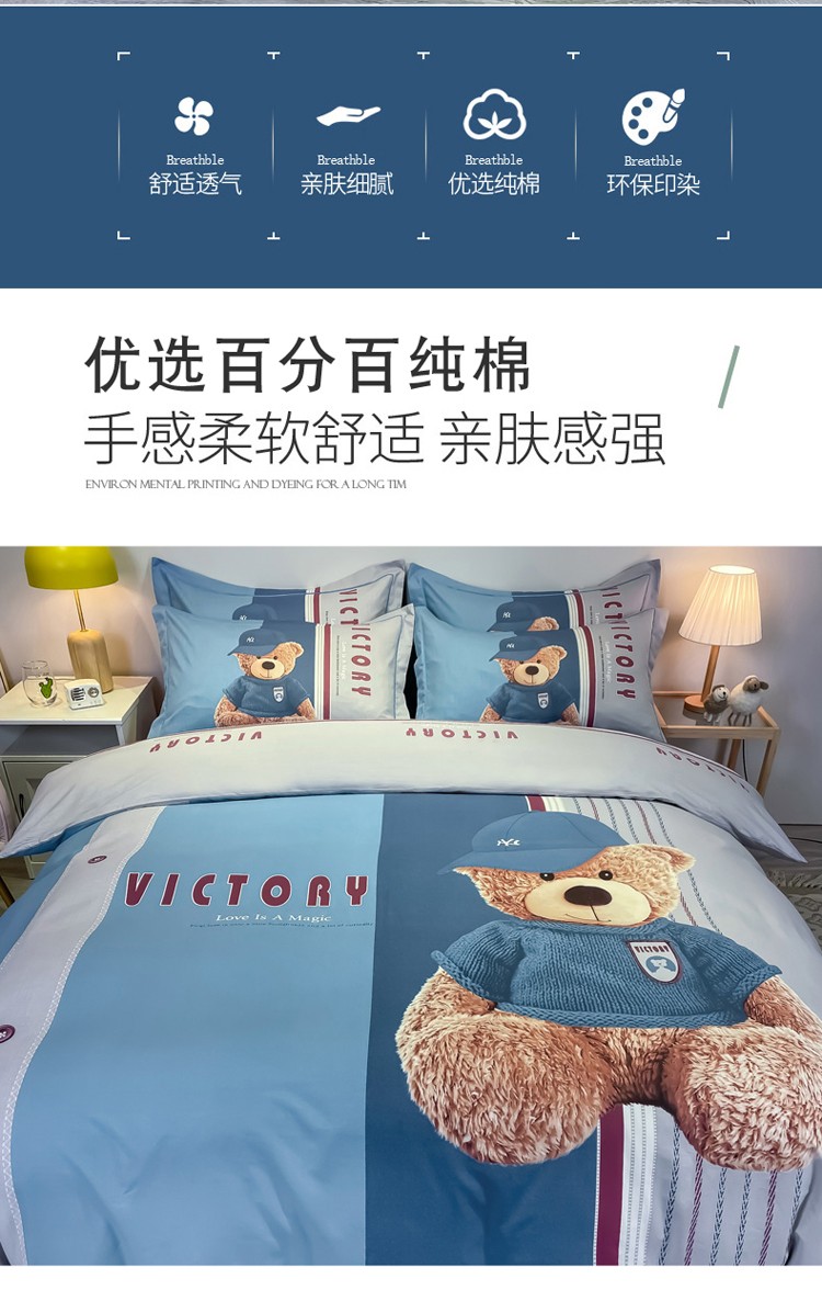 当前位置: 91家纺网 > 商品网购 > 床品套件 > 四件套 > 全棉普通四件套 > 金爱家 2021新款13372大版全棉卡通四件套 公仔熊
