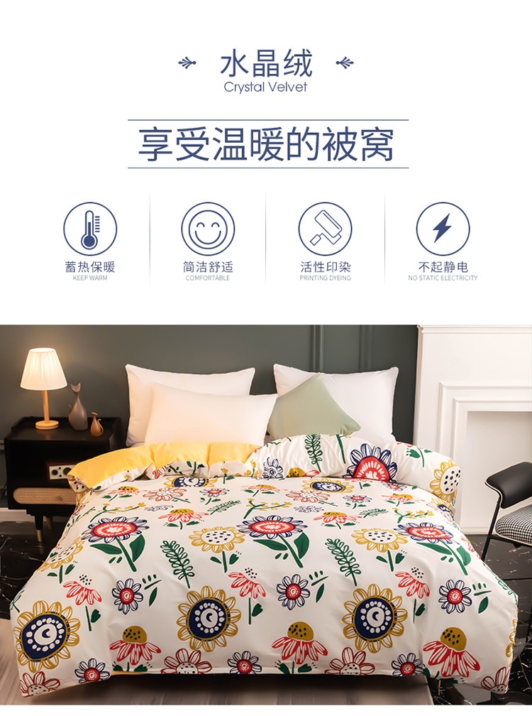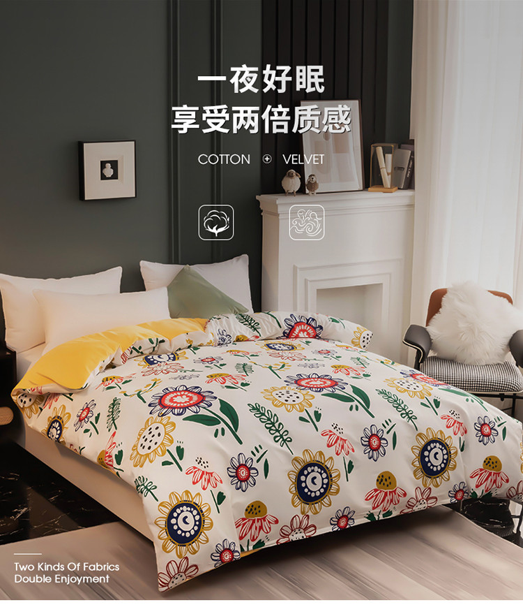 芃成家纺 2021新款棉加绒单被套 太阳花