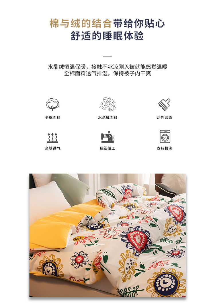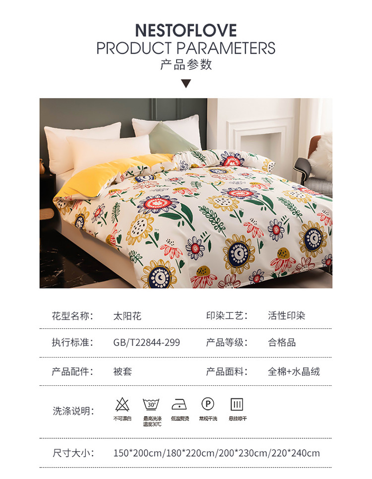 商品名称:芃成家纺 2021新款棉加绒单被套 太阳花