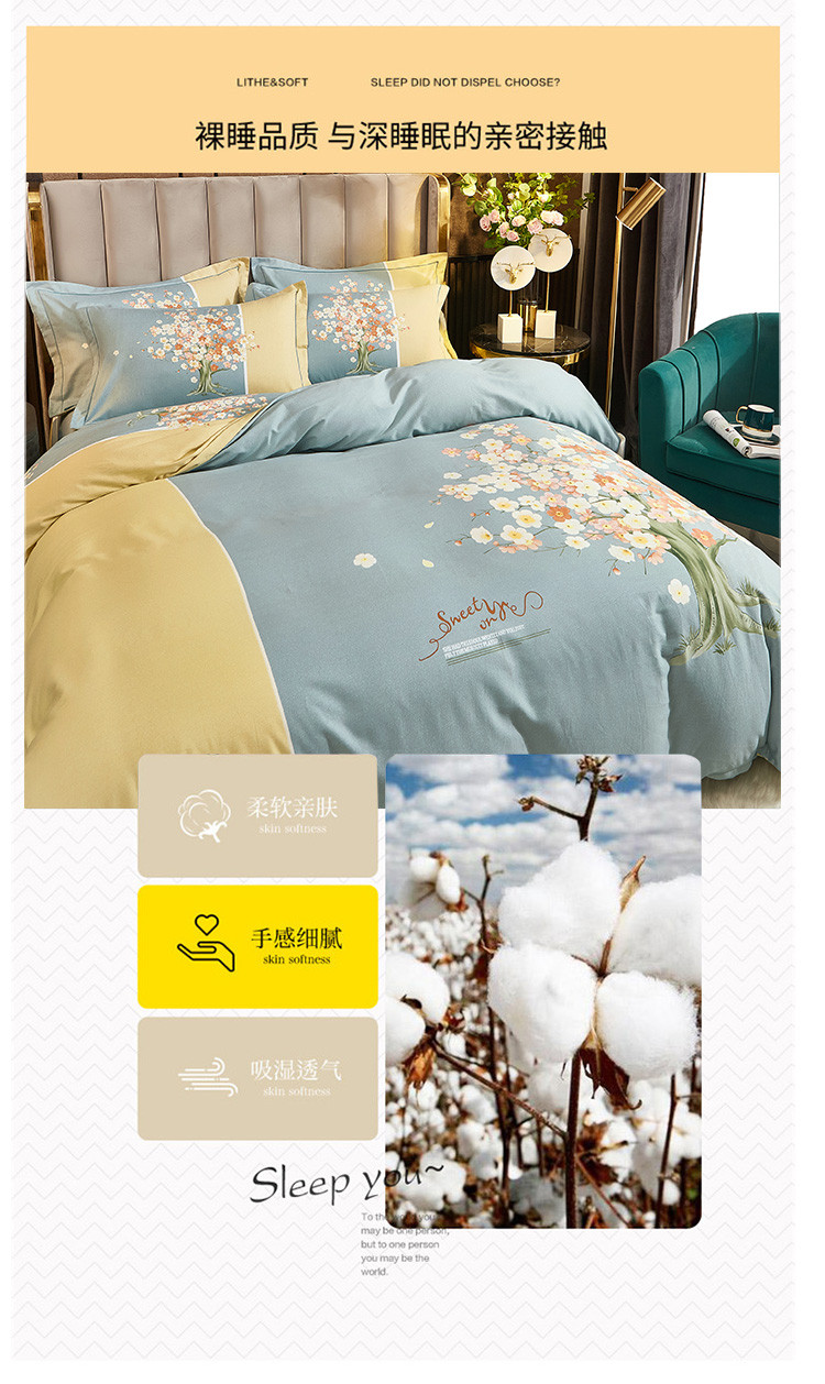 (总)雲归梦 2021新款全棉生态磨毛刺绣四件套,慕思-橙色,慕思-粉紫,慕思-灰,慕思-米黄,慕思-青绿,慕思-天蓝