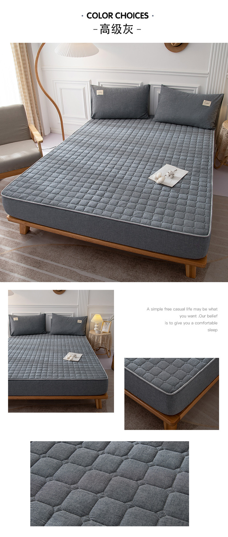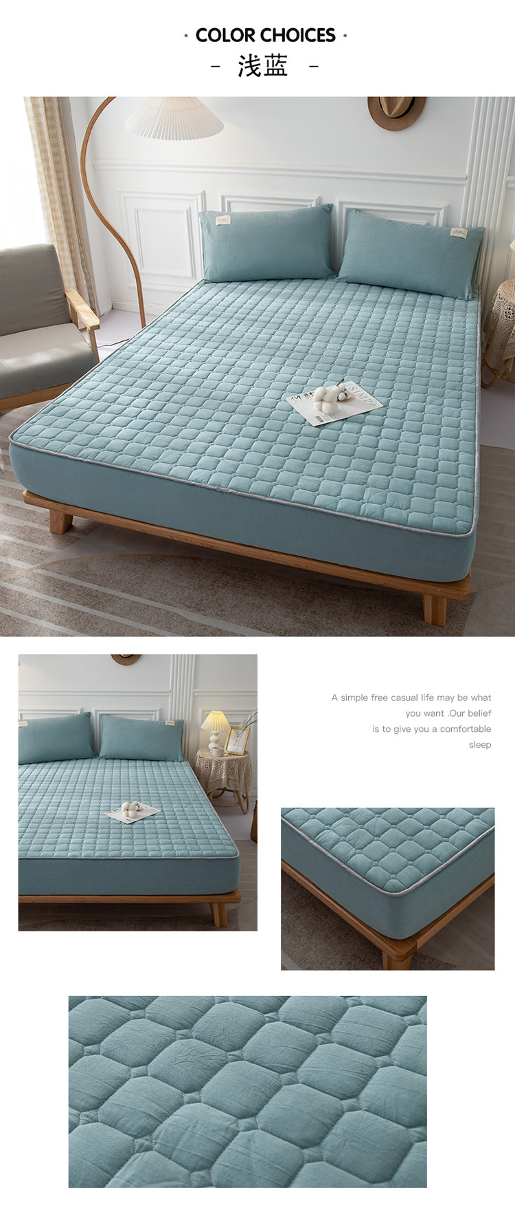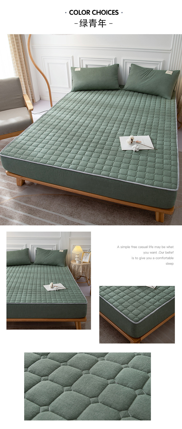 (总)卡伦 2025新款原棉抗菌大豆纤维防水夹棉床笠,白色,淡粉,果绿,卡其,水蓝,星灰