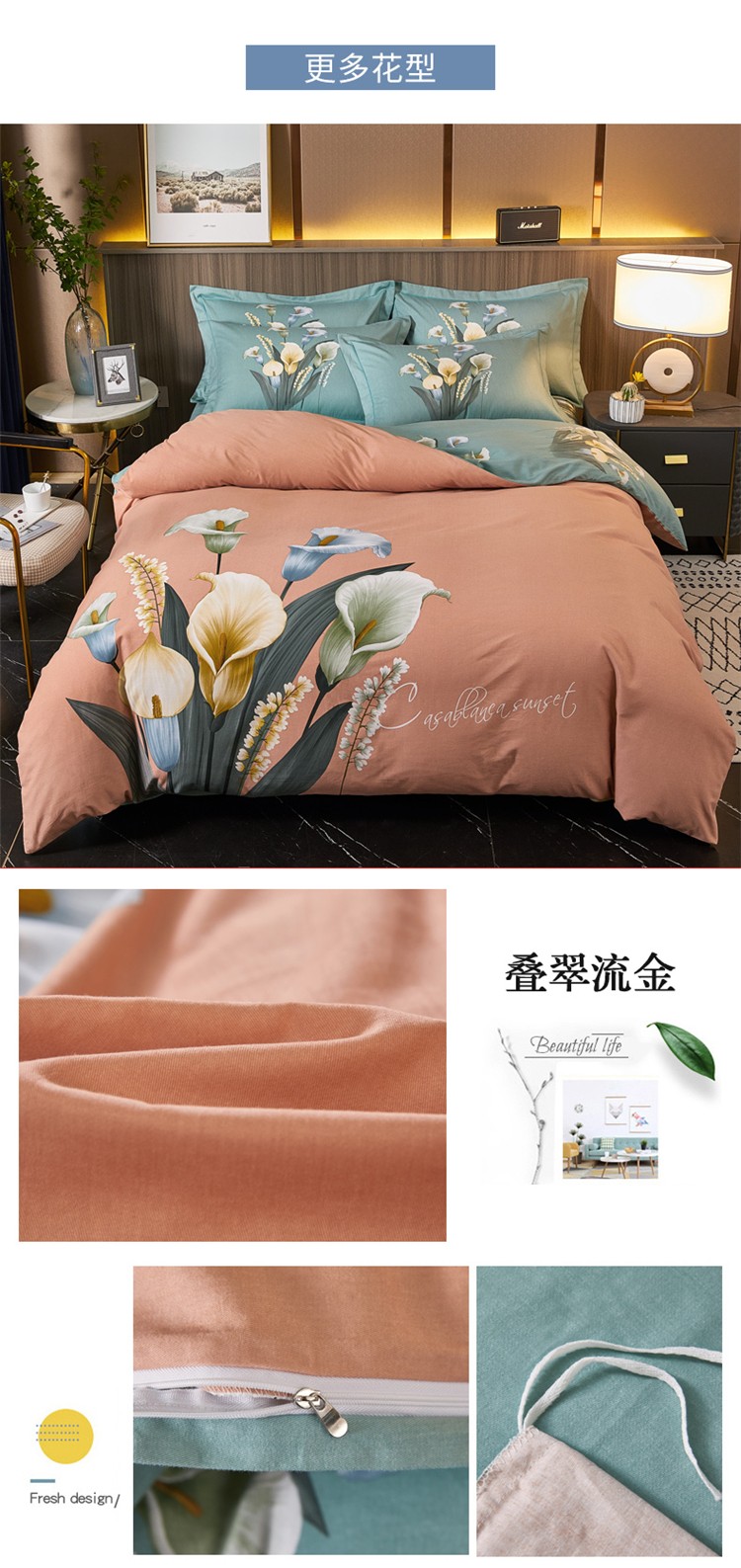 包含该商品全系列所有花型图片:主图+细节图+规格图+懒人图(C店、天猫)