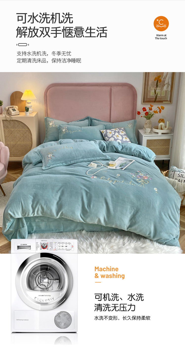 (总)星尚家纺 2024新款保暖全消光A类230g牛奶绒绣花绒四件套-曼妙花园,豆沙粉,孔雀蓝,清新绿,绅士灰,香芋紫,樱花粉