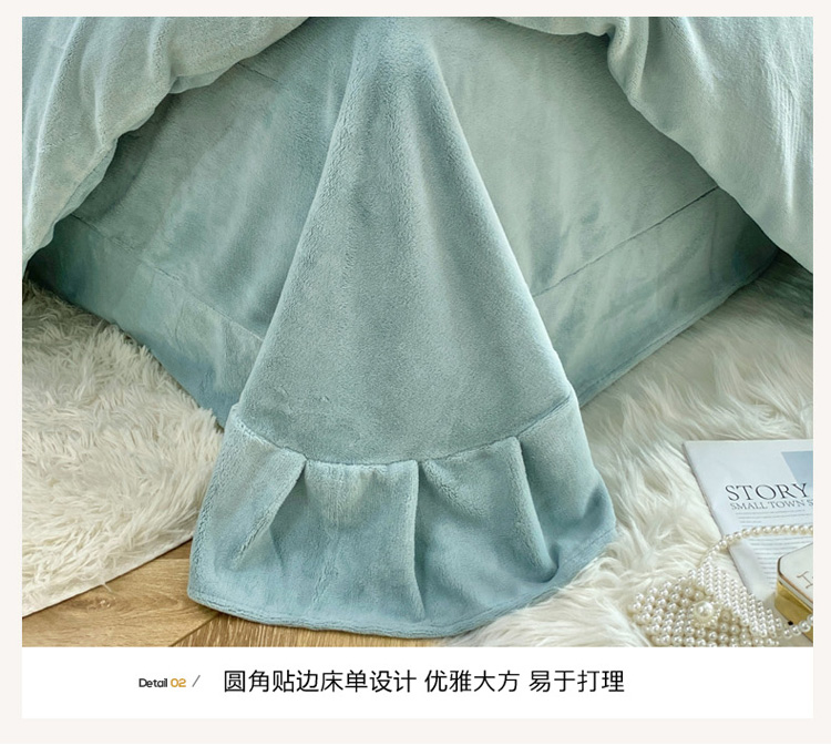 (总)星尚家纺 2024新款加厚保暖全消光牛奶绒夹棉床裙四件套-玫瑰之恋,粉玉,寐紫,浅蓝,水绿