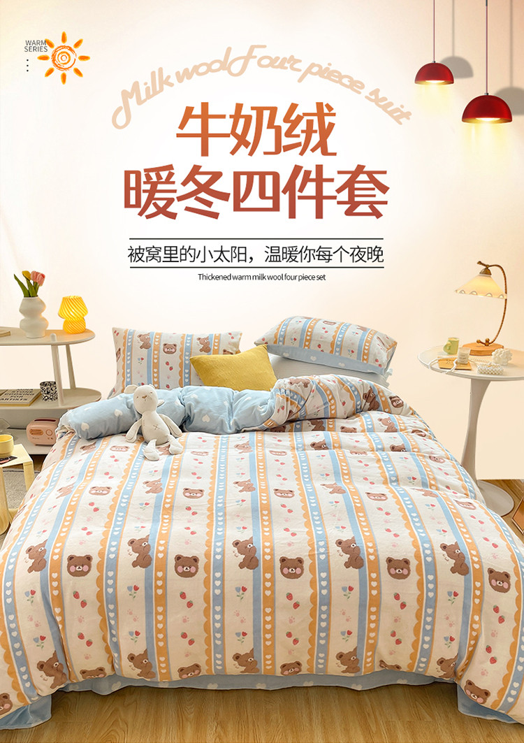 (总)安哆啦 2021新款220g牛奶绒简约款四件套