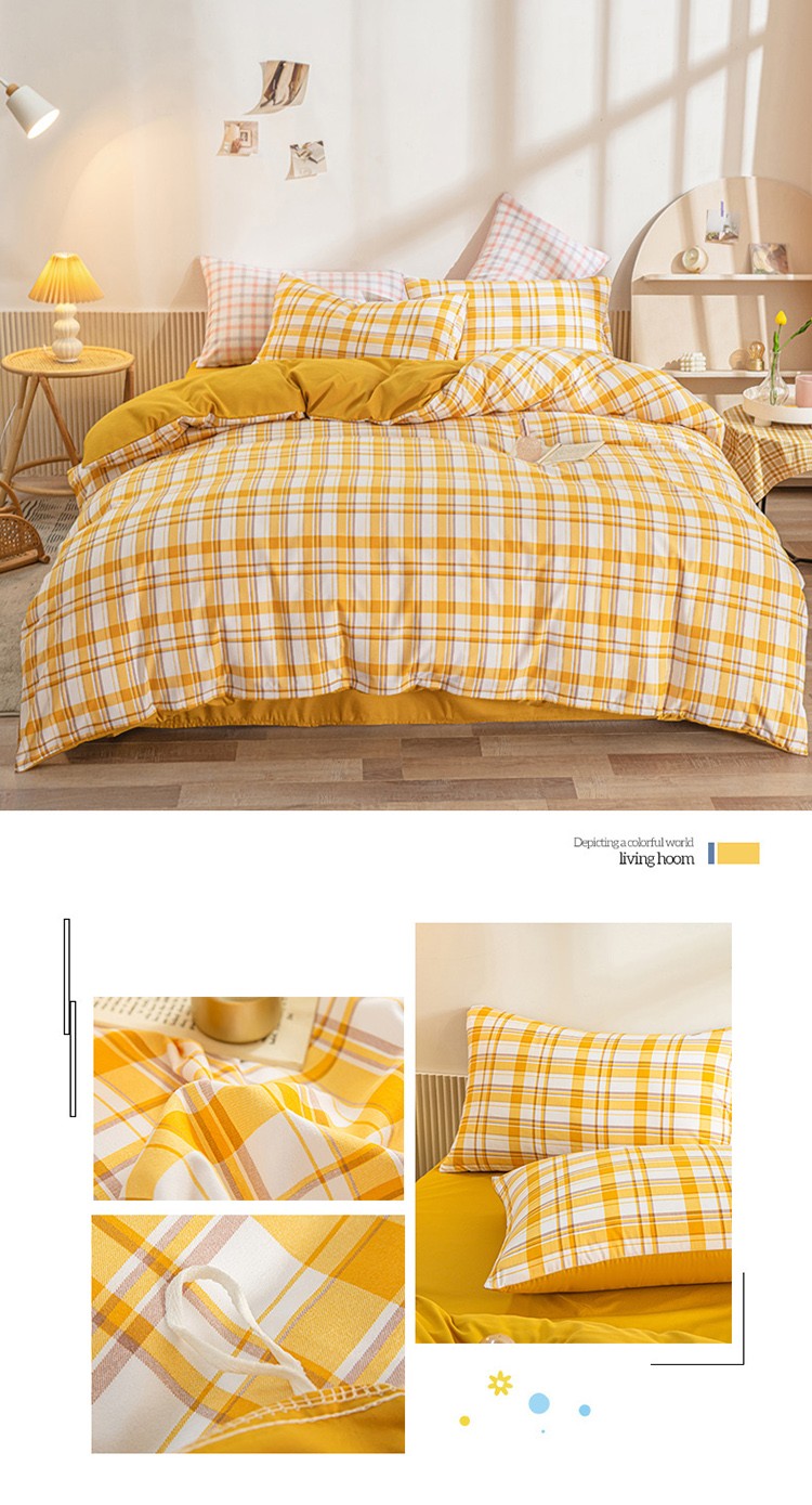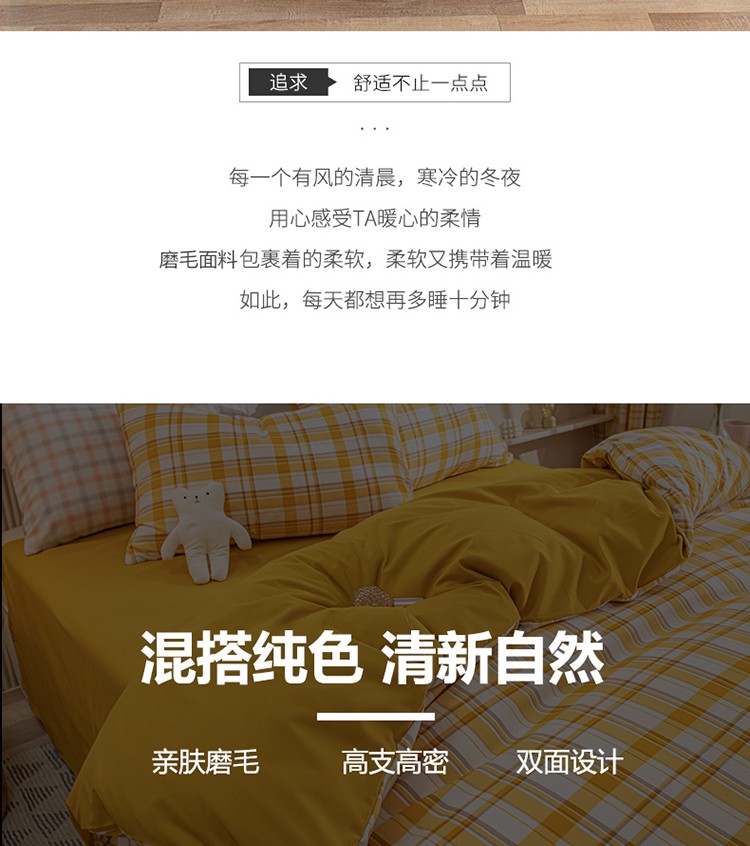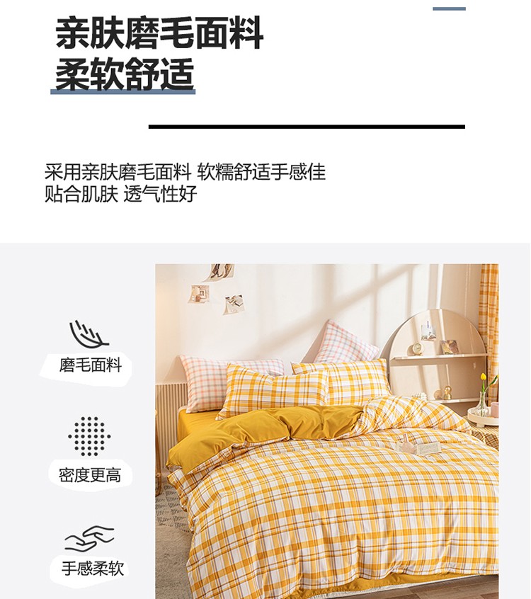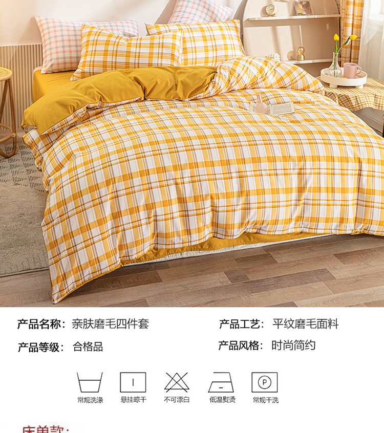 当前位置: 91家纺网 > 商品网购 > 床品套件 > 四件套 > 化纤普通四件套 > 优宜家纺织2023新款化纤磨毛格子四件套 芒果格